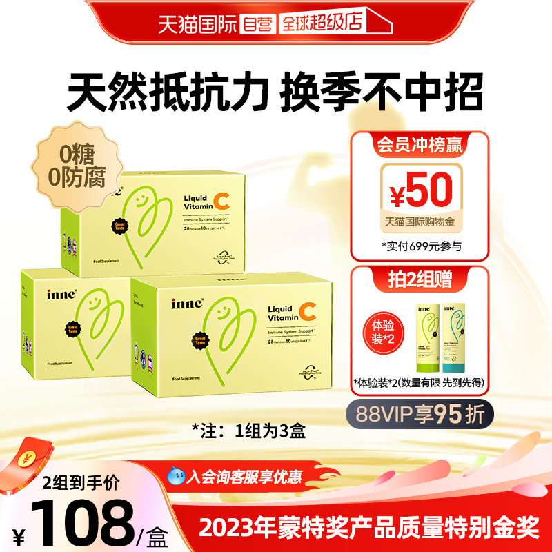 【自营】inne因你维生素c婴儿童补VC 提升自护0糖0防腐 28条*3
