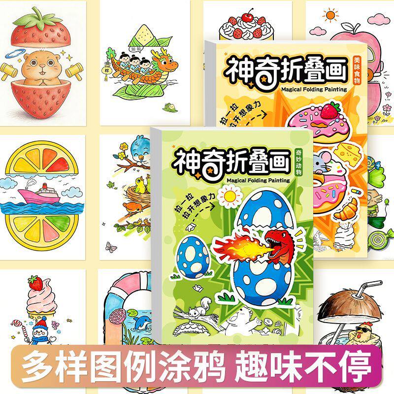 趣味折叠书彩色魔法折叠绘画本儿童益智创意少儿兴趣涂鸦临摹画册