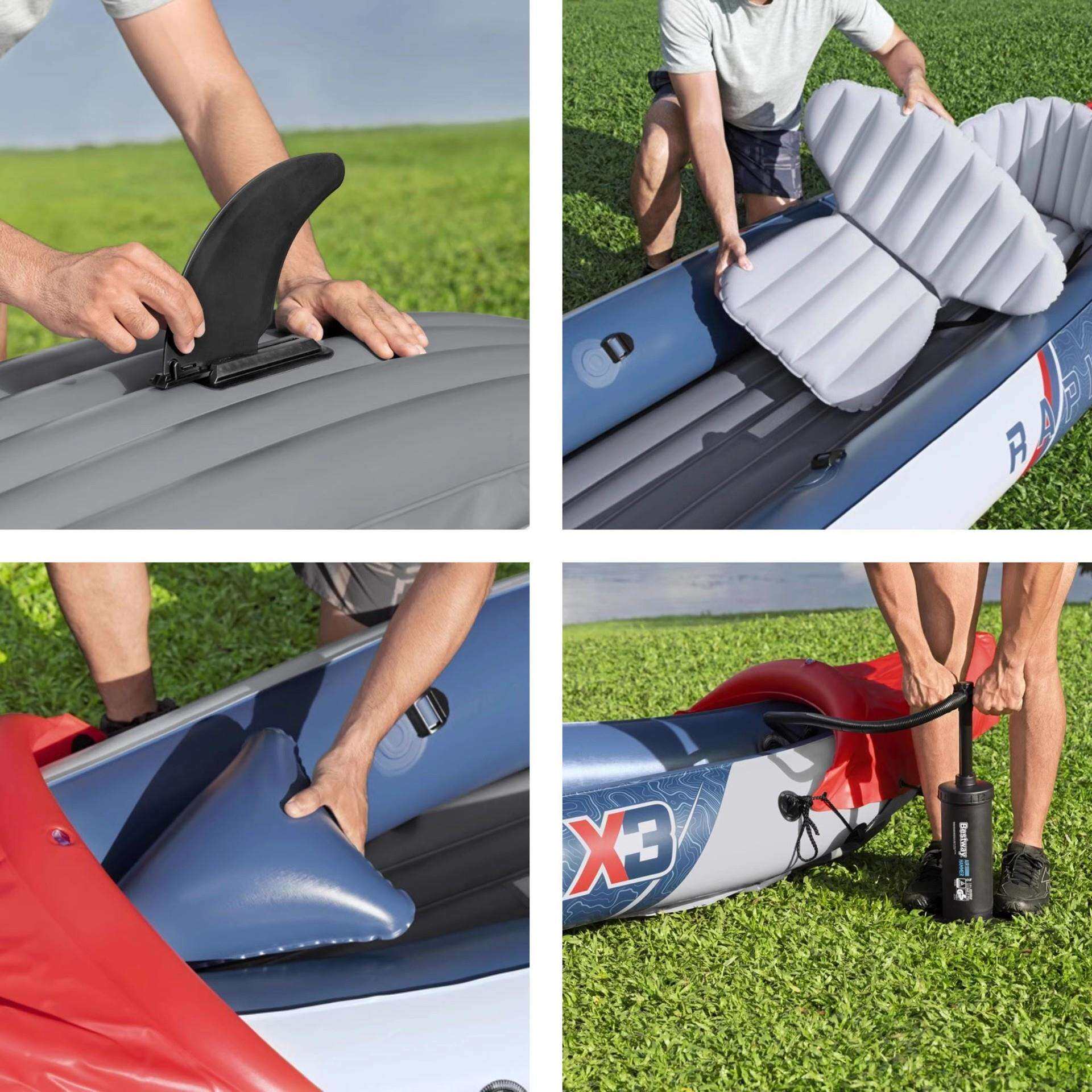 Bestway双人漂流充气船皮划艇独木舟三人船送船桨气泵