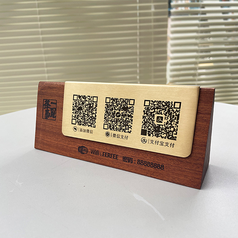 实木二维码展示i收款码台牌定制收银柜台前台扫码付款立式展示牌