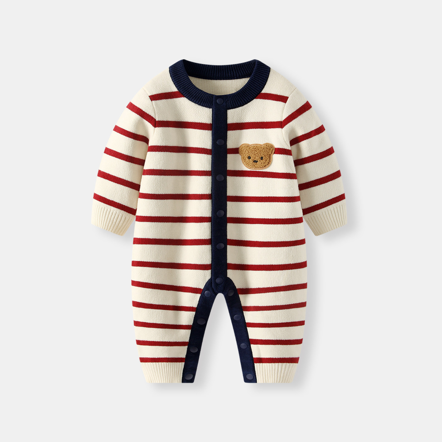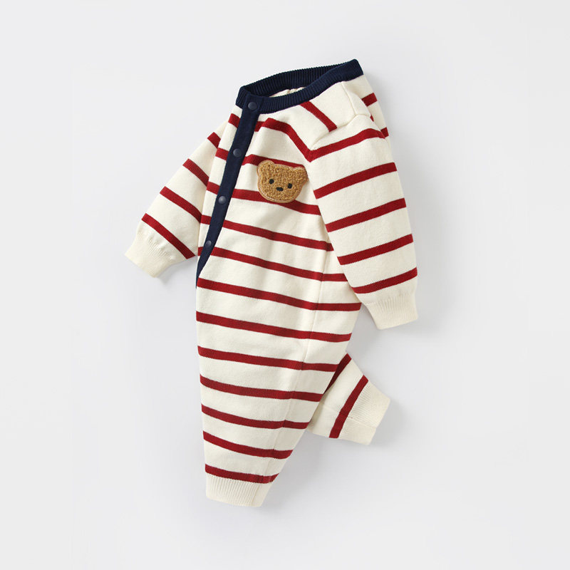 婴儿拜年服秋冬连体衣新生儿男宝宝满月百天加绒加厚毛衣冬装衣服