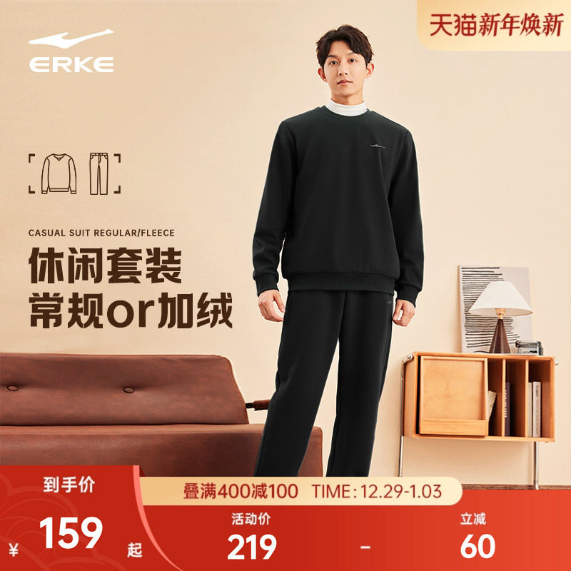 鸿星尔克运动套装男冬季新款男士加绒运动服圆领卫衣卫裤男装衣服