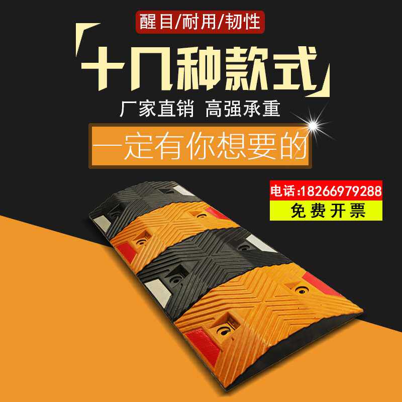 道路橡胶减速带70MM加厚型高速公路减震板汽车停车斜坡限速缓冲带