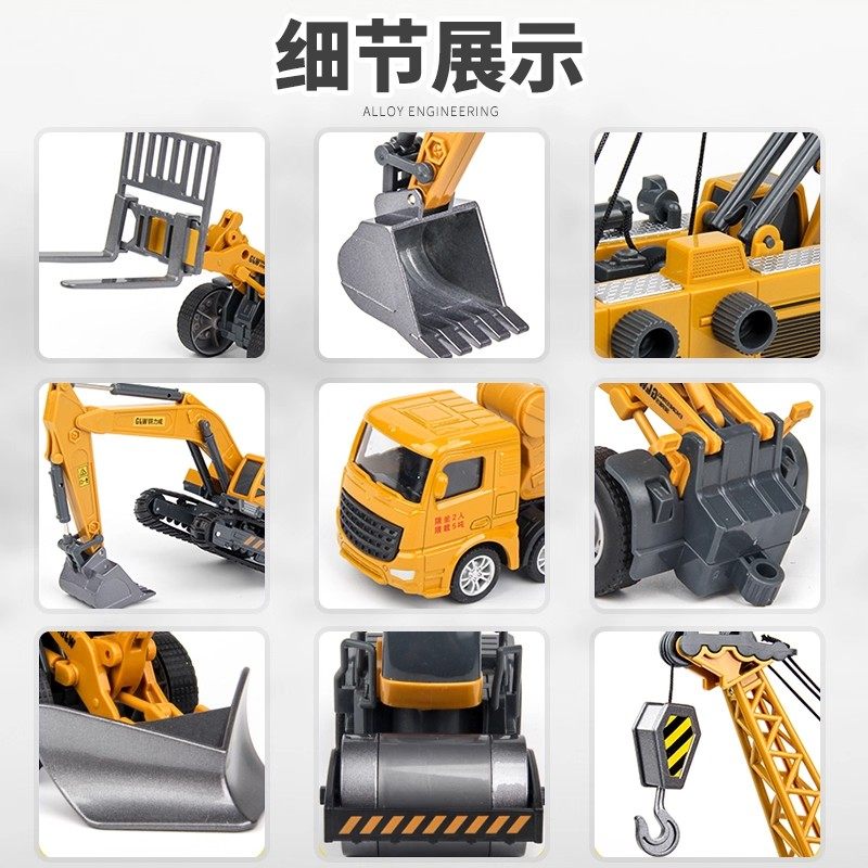 合金工程车玩具儿童挖掘机小男孩吊车挖土机搅拌车运输车模型套装