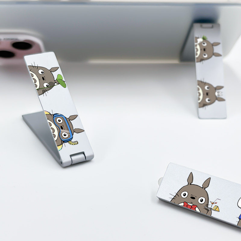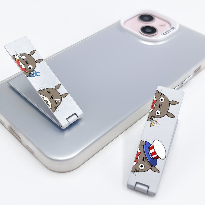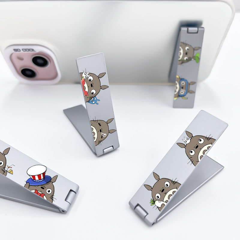 diy创意手机支架宫崎骏电影龙猫卡通金属折叠支架一字支撑式便捷通用桌面网红学生新款粘贴式背贴可爱