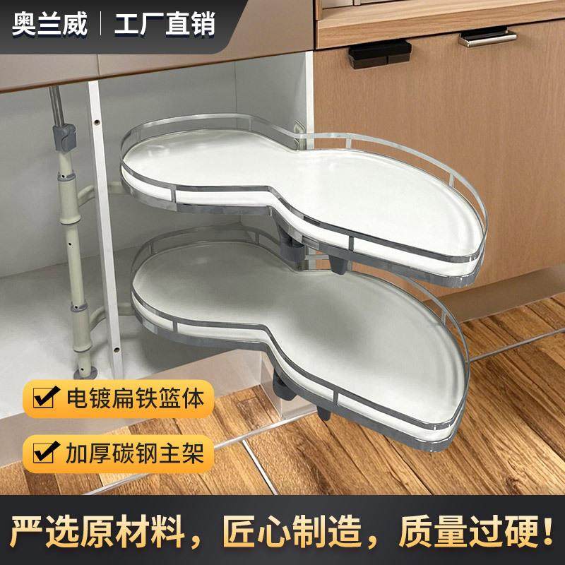 转角拉篮厨房橱柜旋转置物架小怪物飞碟内置收纳多层拐角拉篮