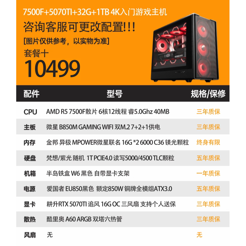 硬件动力丨RTX5070TI 16G/5070 12G/台式游戏主机战地6 /9800X3D