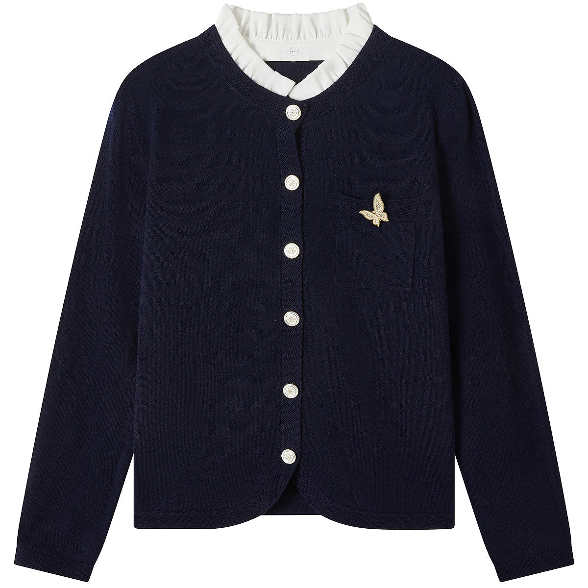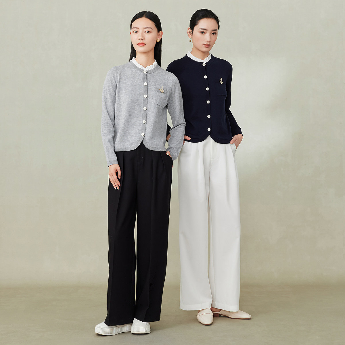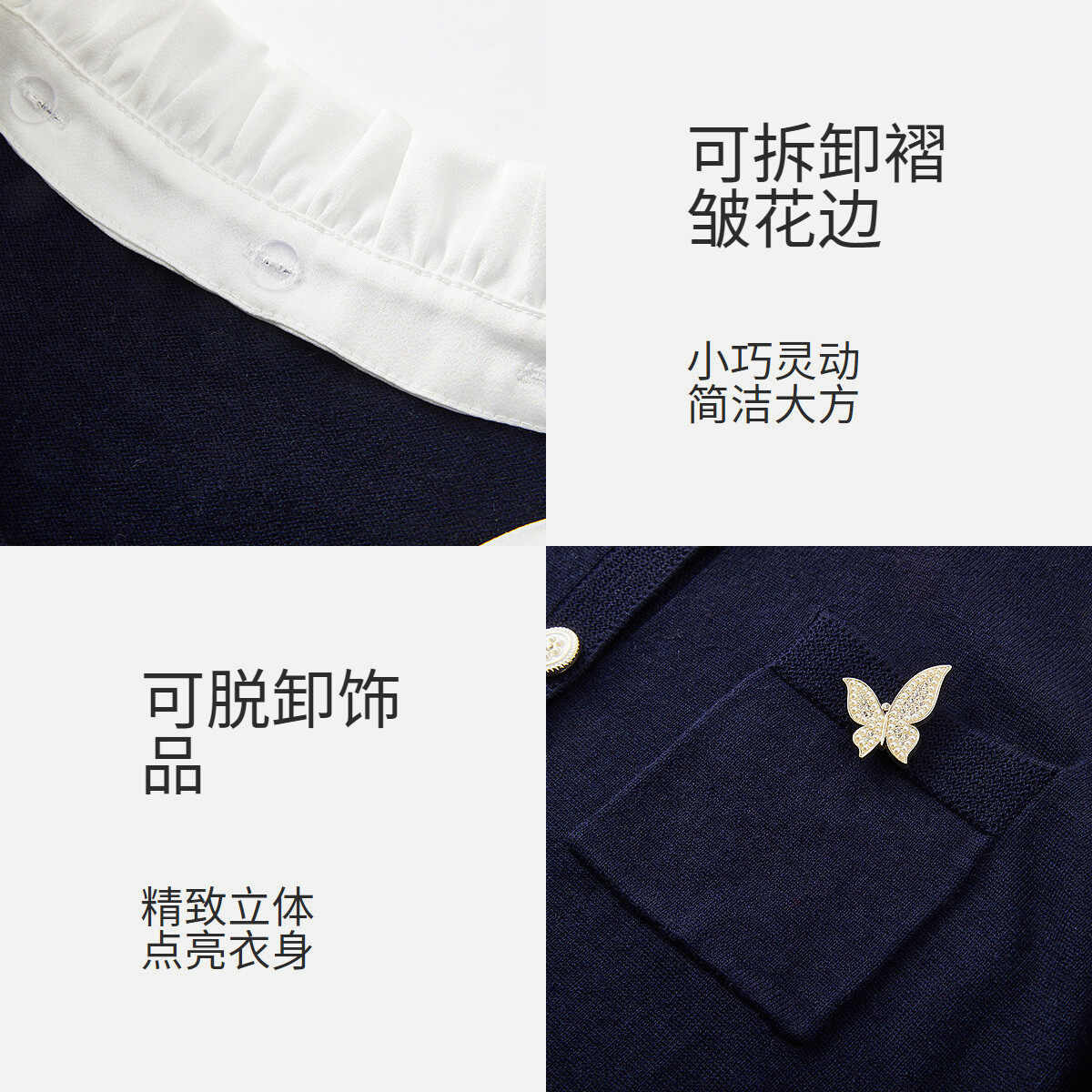菲妮迪品牌针织衫2025秋季新款小香风花边领时尚设计感羊毛上衣女