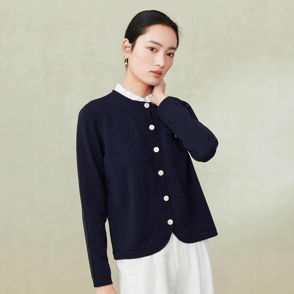 2026新款女装宽松针织开衫纯棉春秋外套纯色百搭圆领毛衣针织衫潮