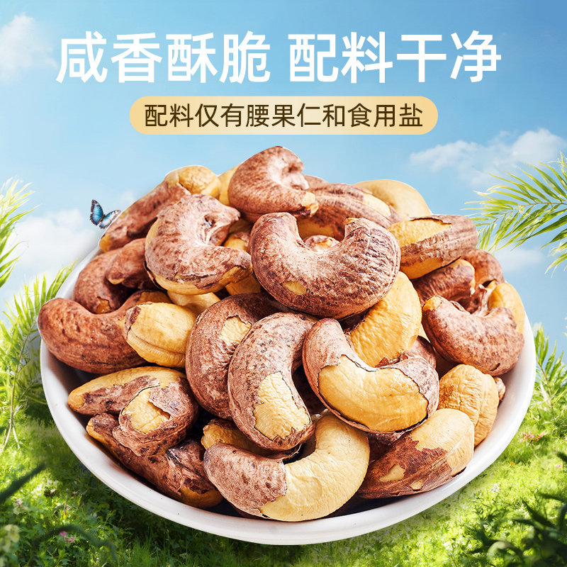 秋淘带皮大腰果仁500g原味盐焗紫皮新货越南特产坚果干果孕妇零食