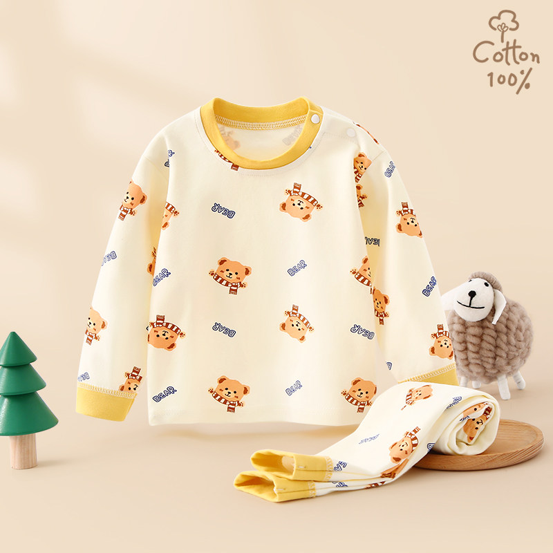 婧麒宝宝秋衣秋裤纯棉秋季婴儿分体套装全棉保暖内衣儿童衣服睡衣