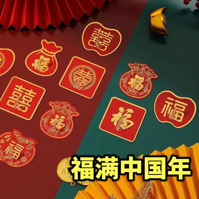 挂钩新年福字红色喜庆小挂钩强力粘胶免打孔挂中国结灯笼承重粘钩