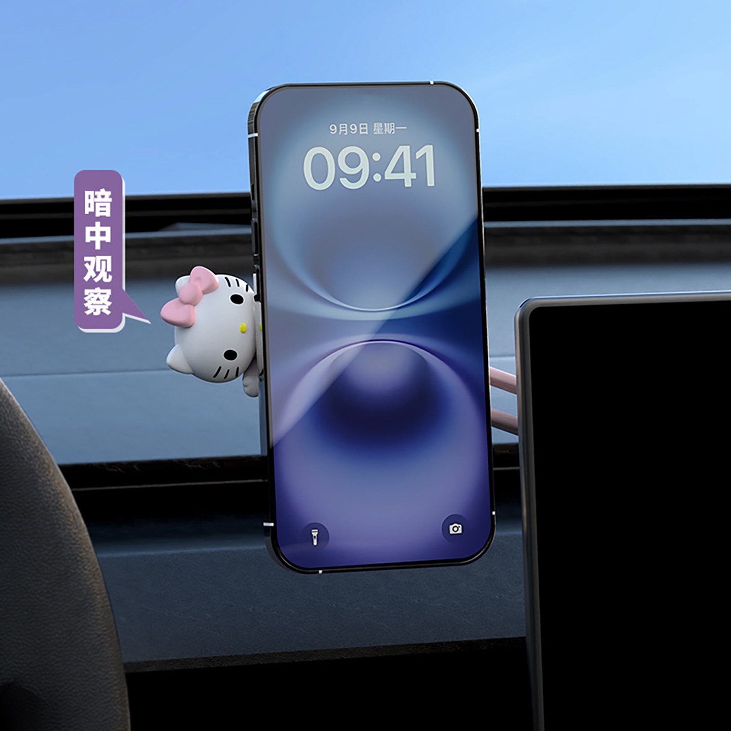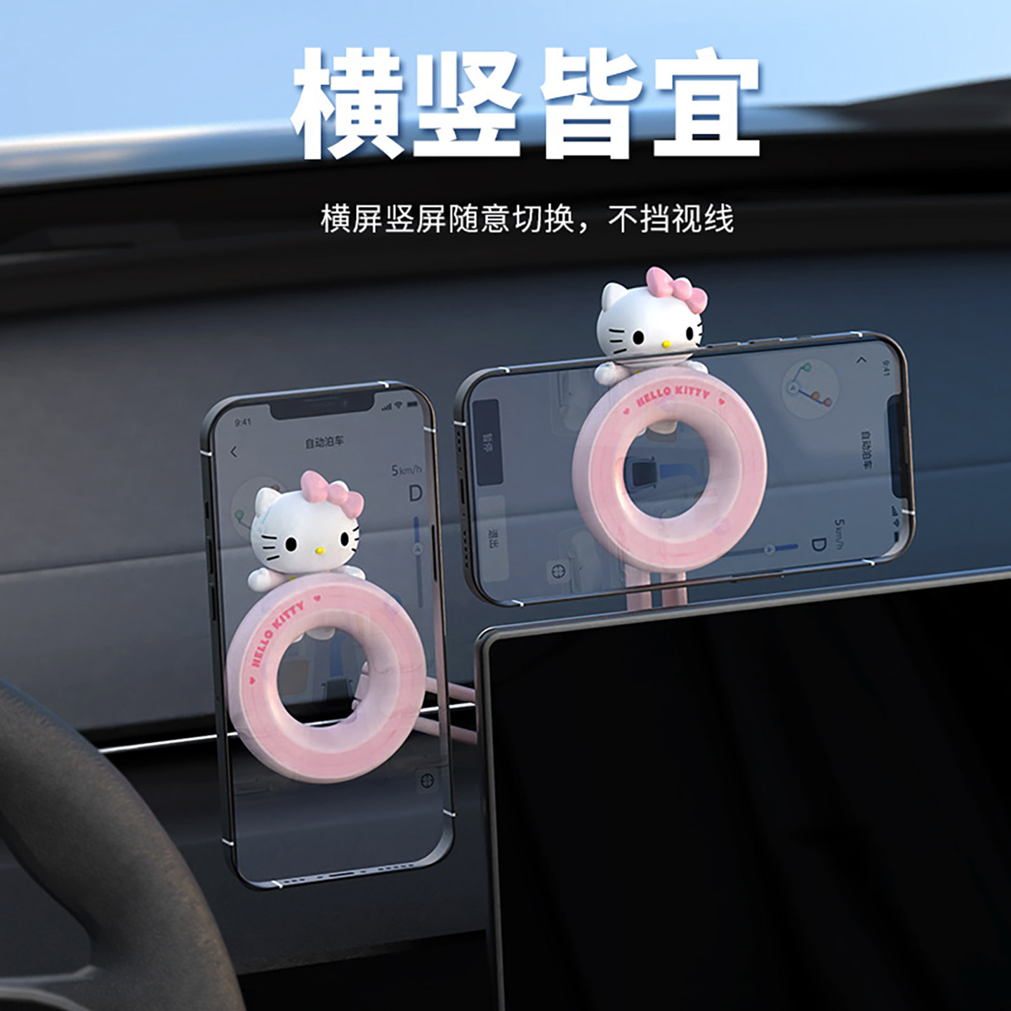 正版三丽鸥屏幕磁吸车载手机支架可旋转汽车悬浮屏导航手机支撑架