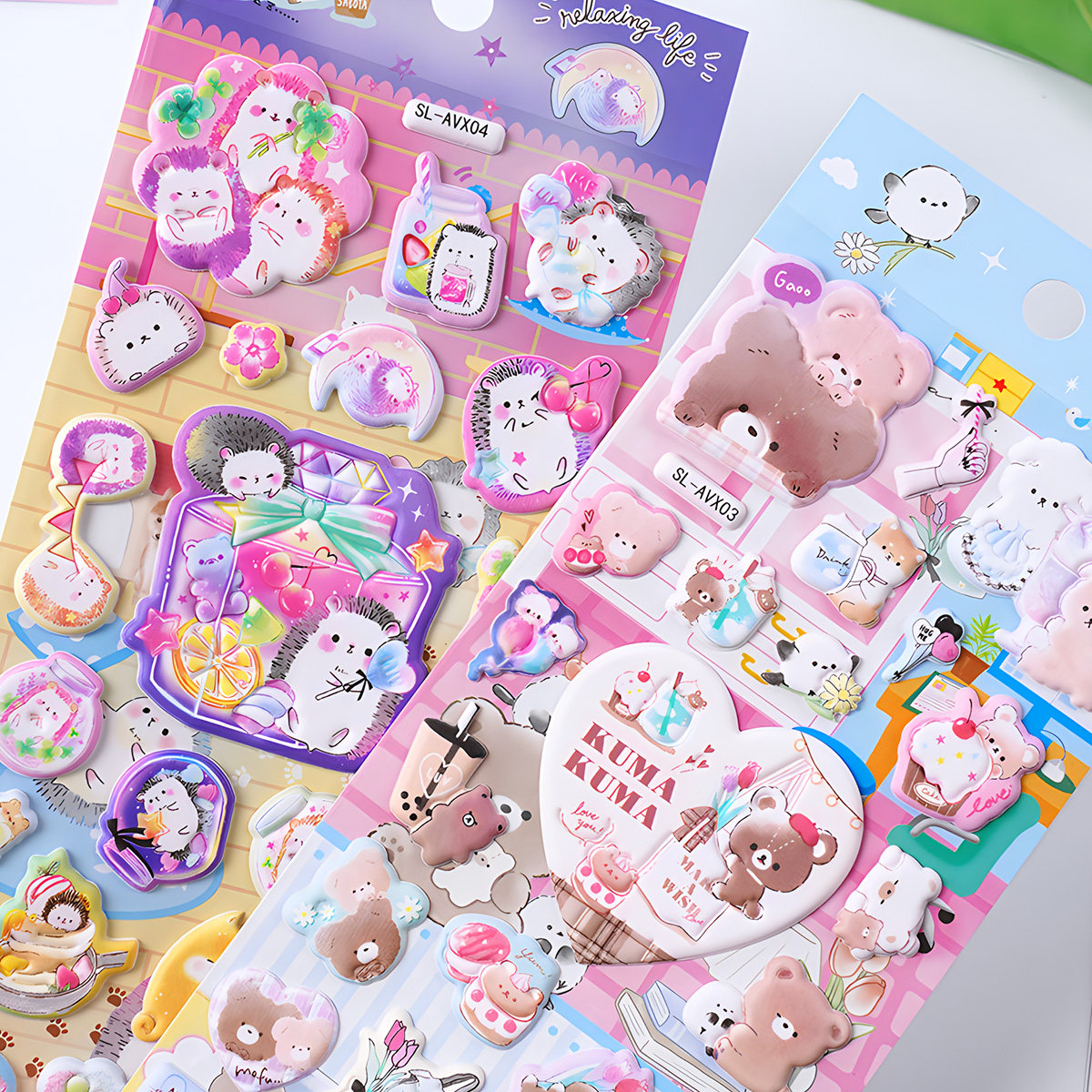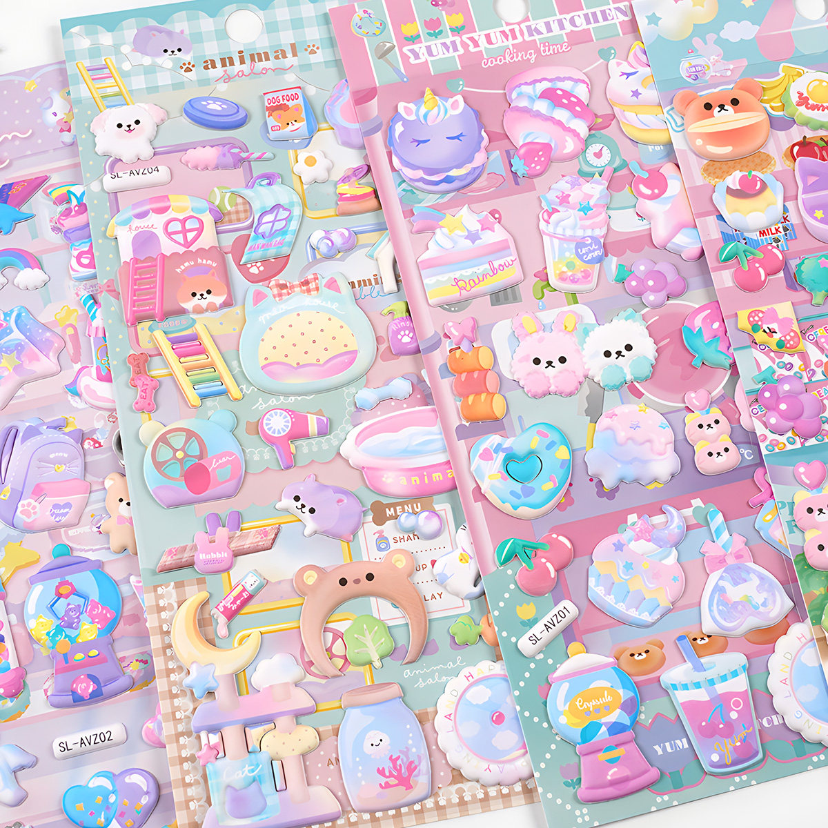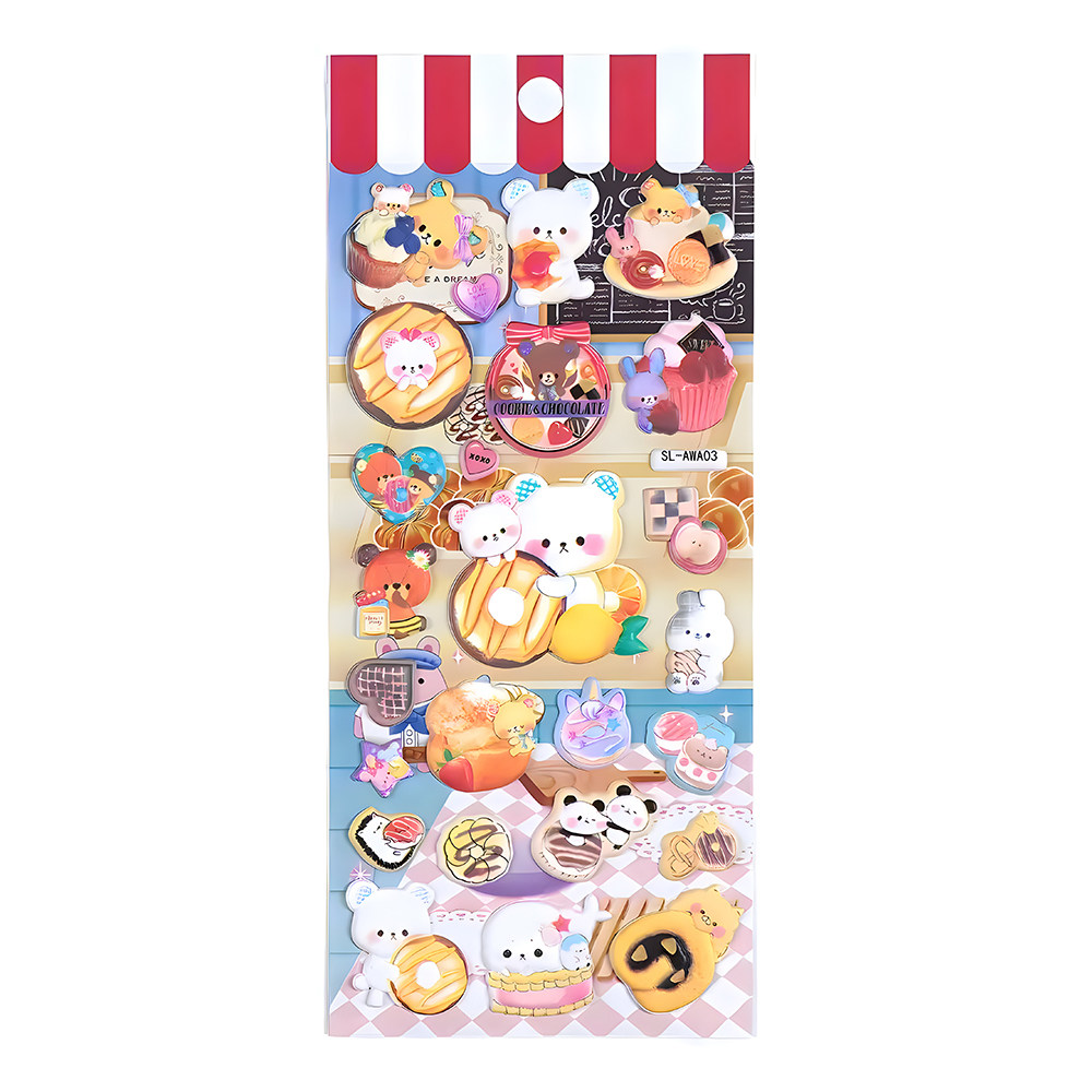 日系梦幻卡通美食3D立体泡泡贴泡棉贴纸企鹅小熊独角兽卡套装饰贴