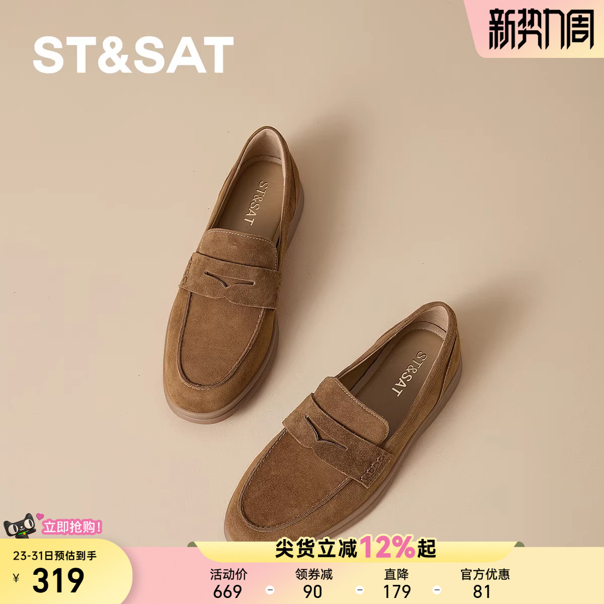 星期六真皮反绒乐福鞋柔软轻便2025秋冬新款老钱风高级感豆豆鞋