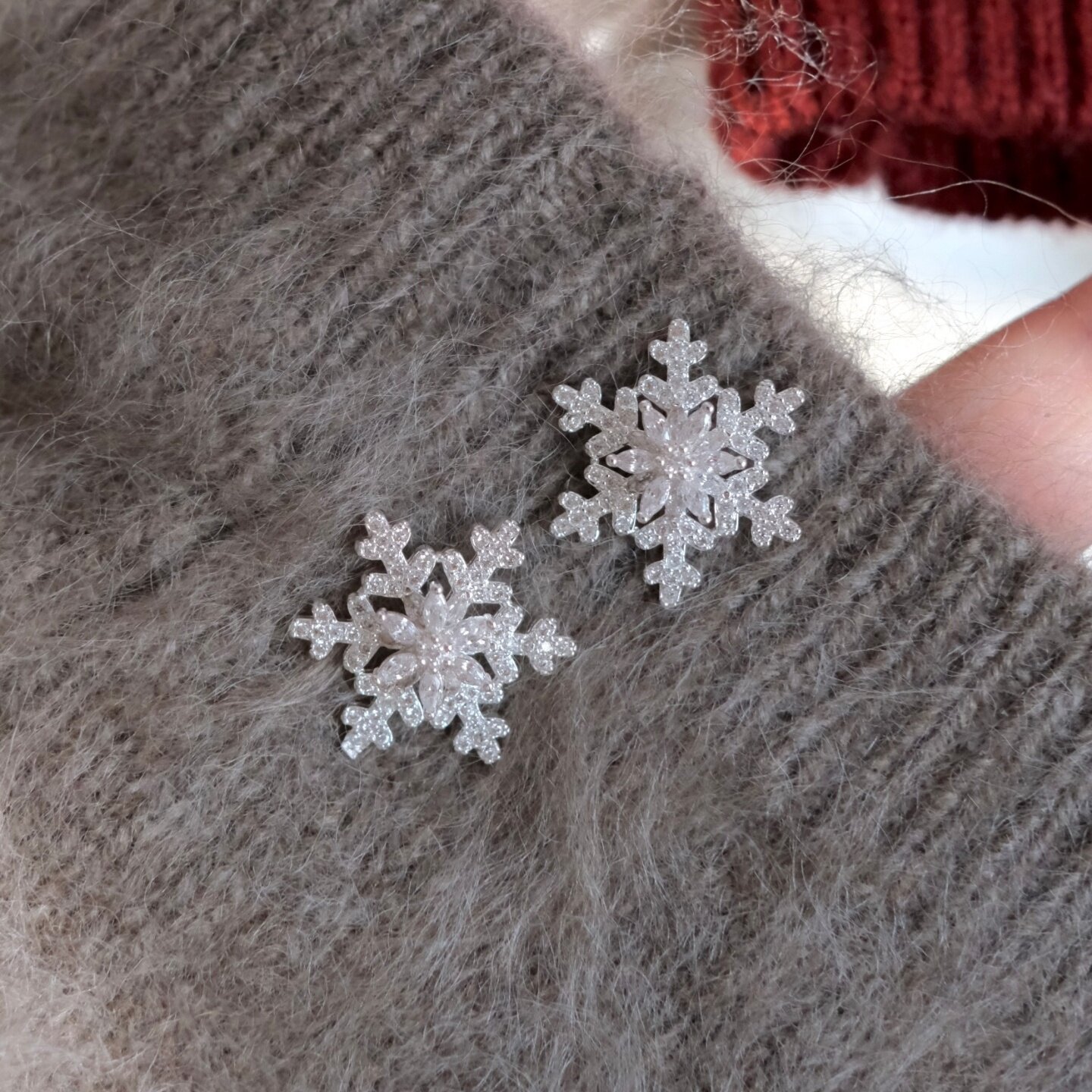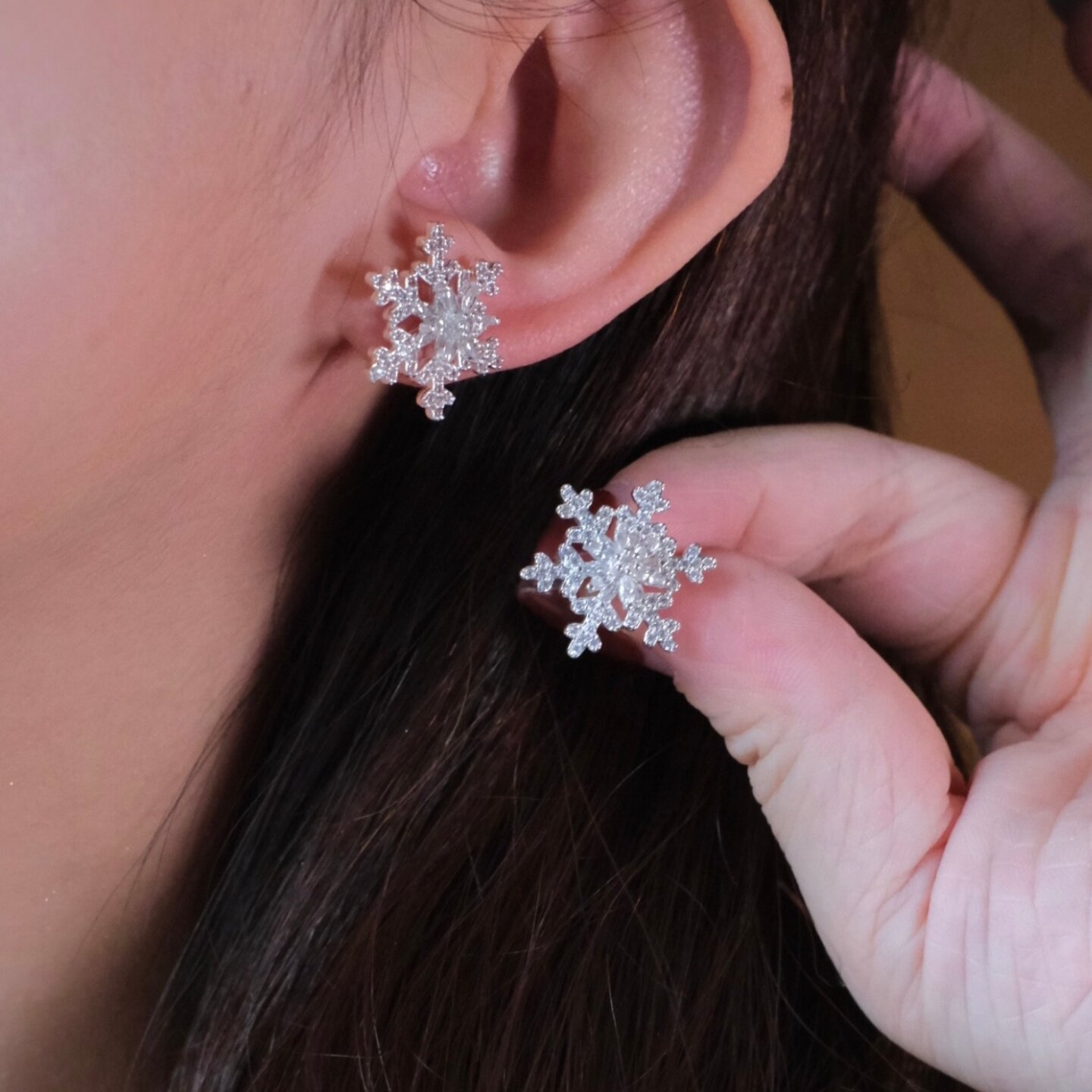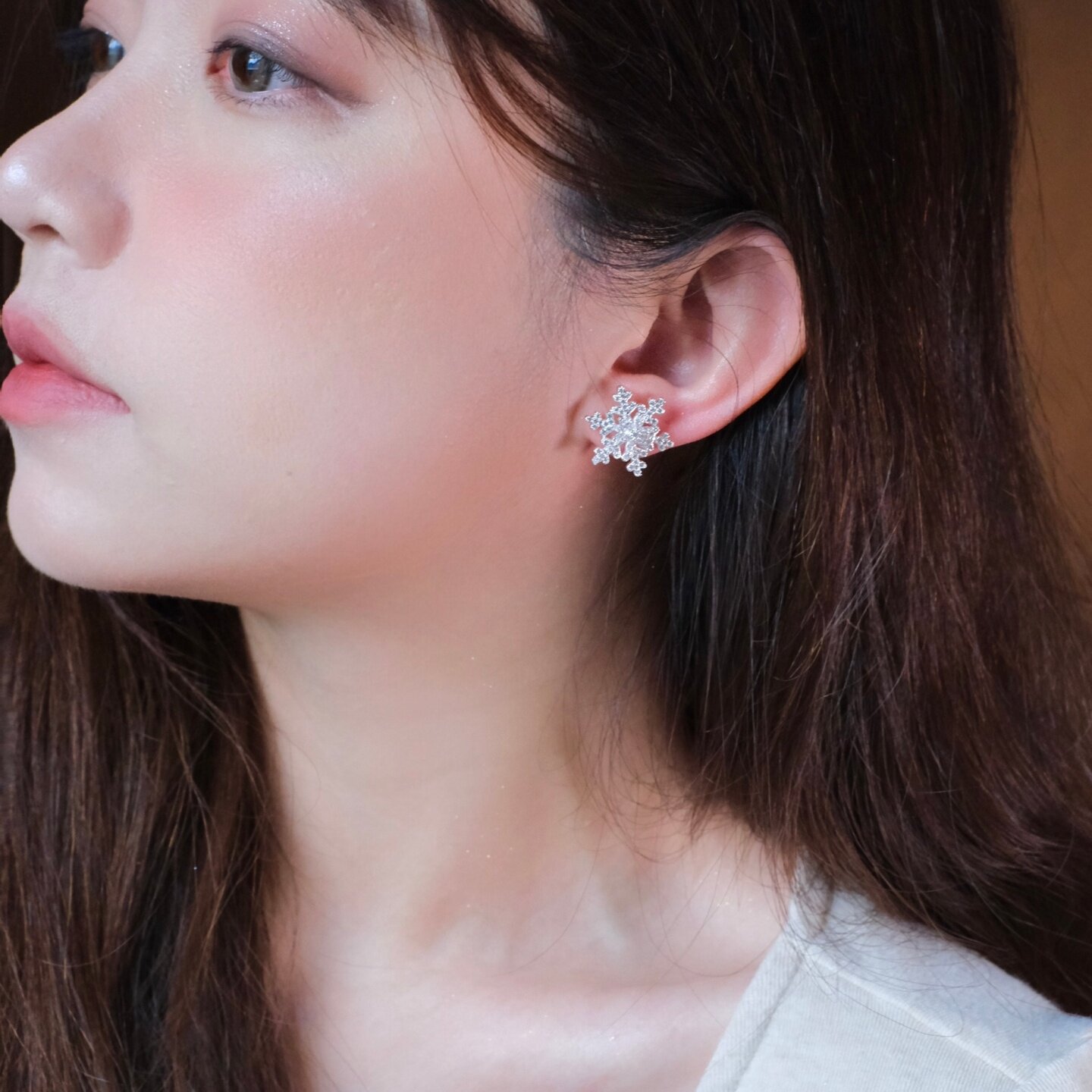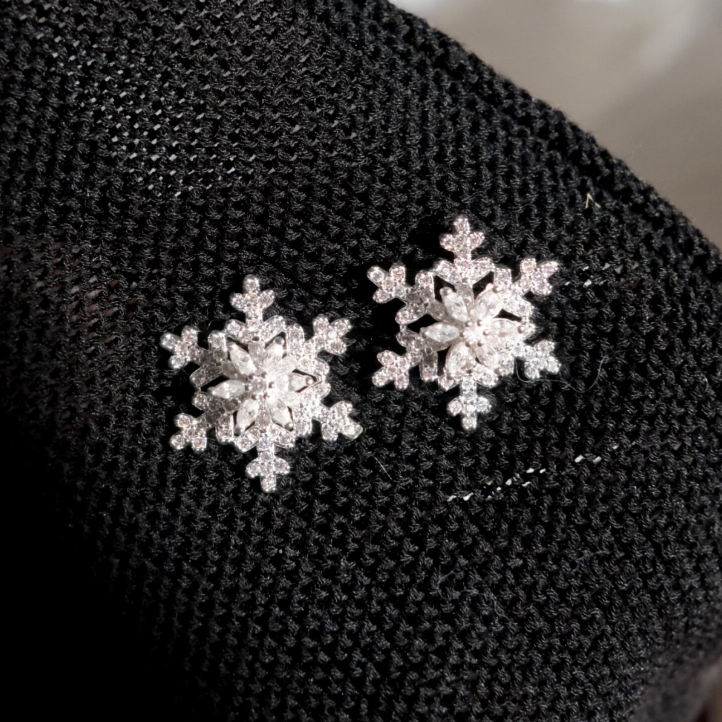 《雪绒花》爆闪满钻冬季雪花轻奢百搭锆石耳钉耳夹耳饰新年氛围感