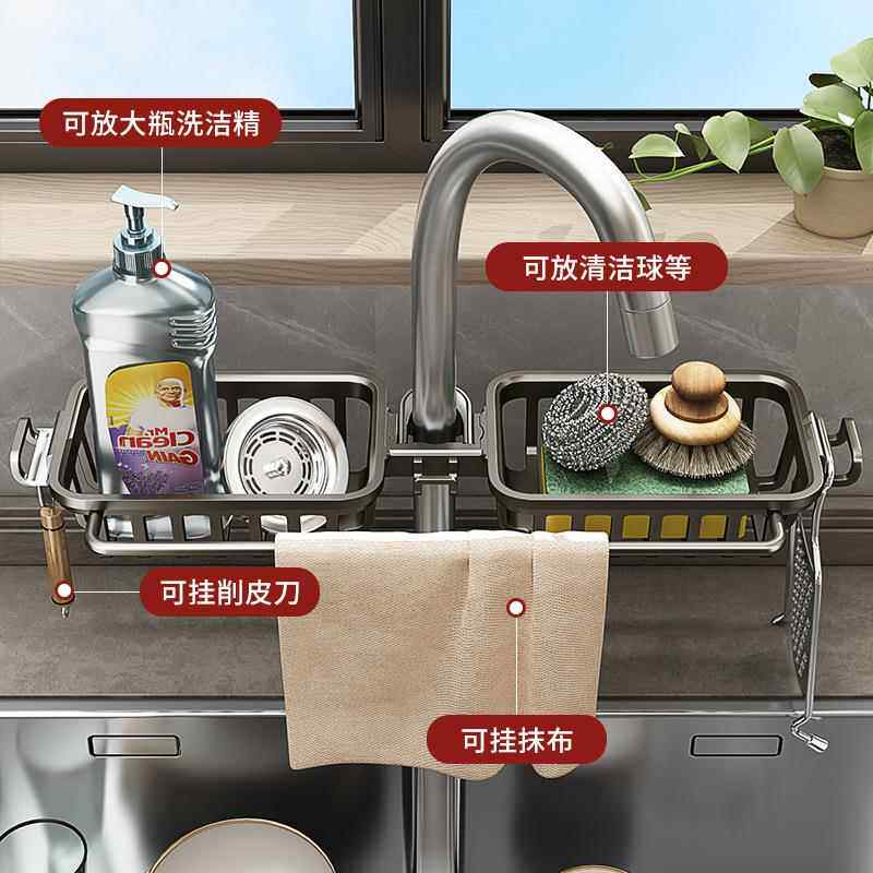 不锈钢厨房水龙头置物架洗碗水槽架沥水篮海绵刷百洁布抹布收纳架