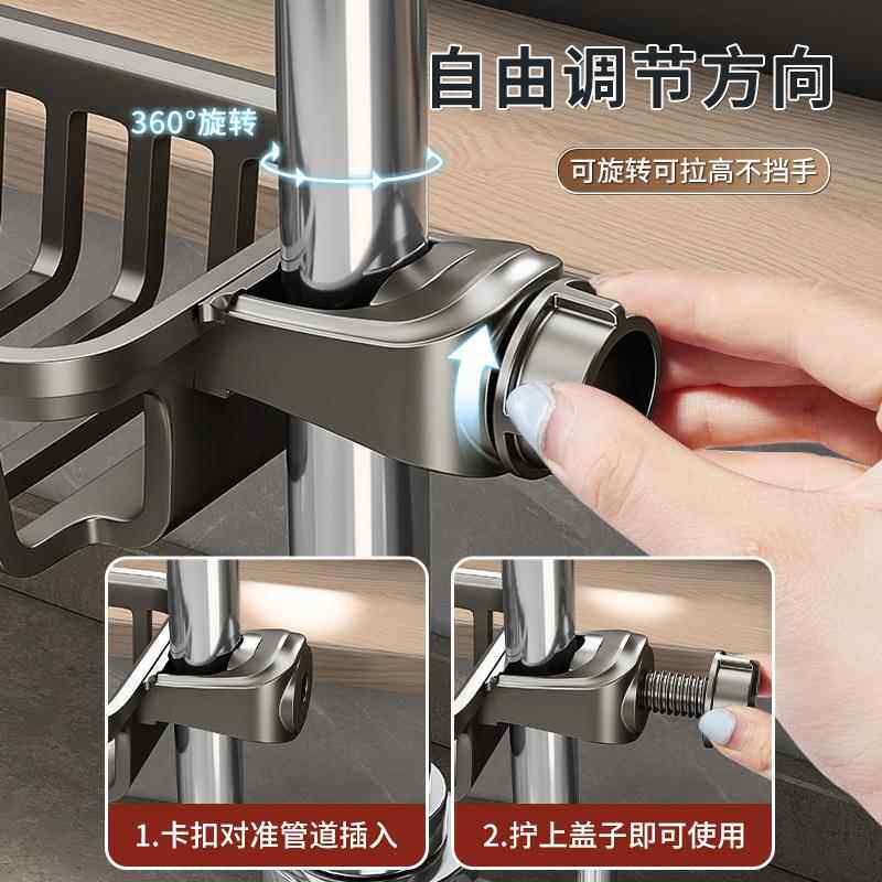 水龙头置物架沥水架厨房龙头挂毛巾架抹布架水槽免打孔收纳不绣钢