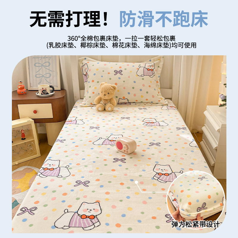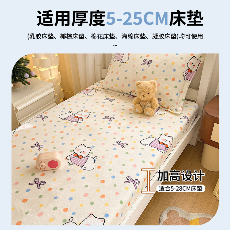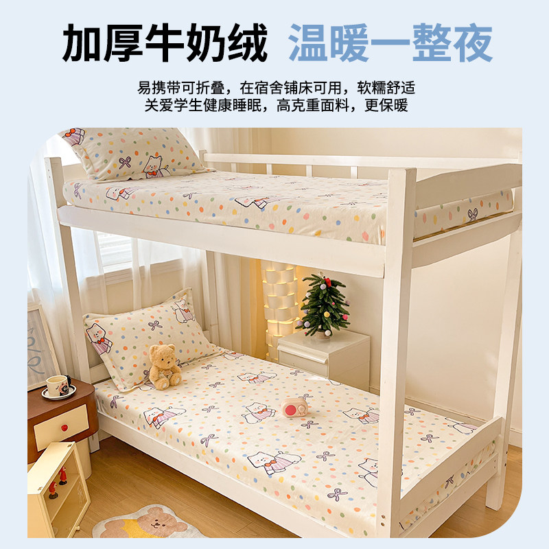 学生宿舍牛奶绒珊瑚床笠单件90X200儿童冬季加绒床罩单人床单套罩