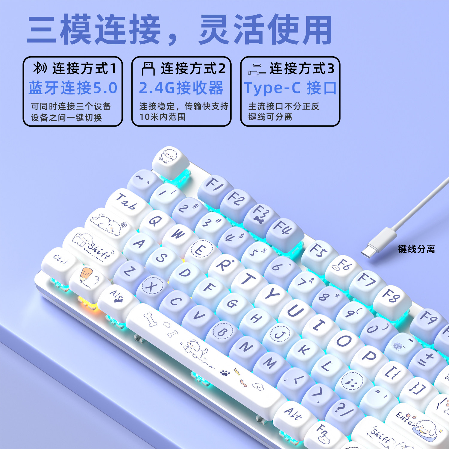 狼蛛F87键无线机械键盘F3287键鼠套装青红茶轴可爱游戏办公通用
