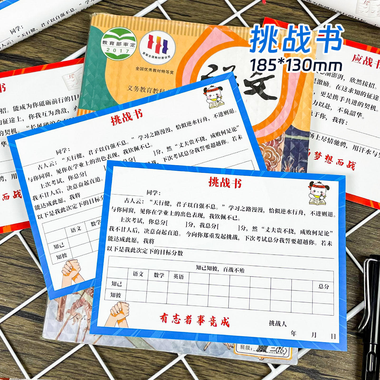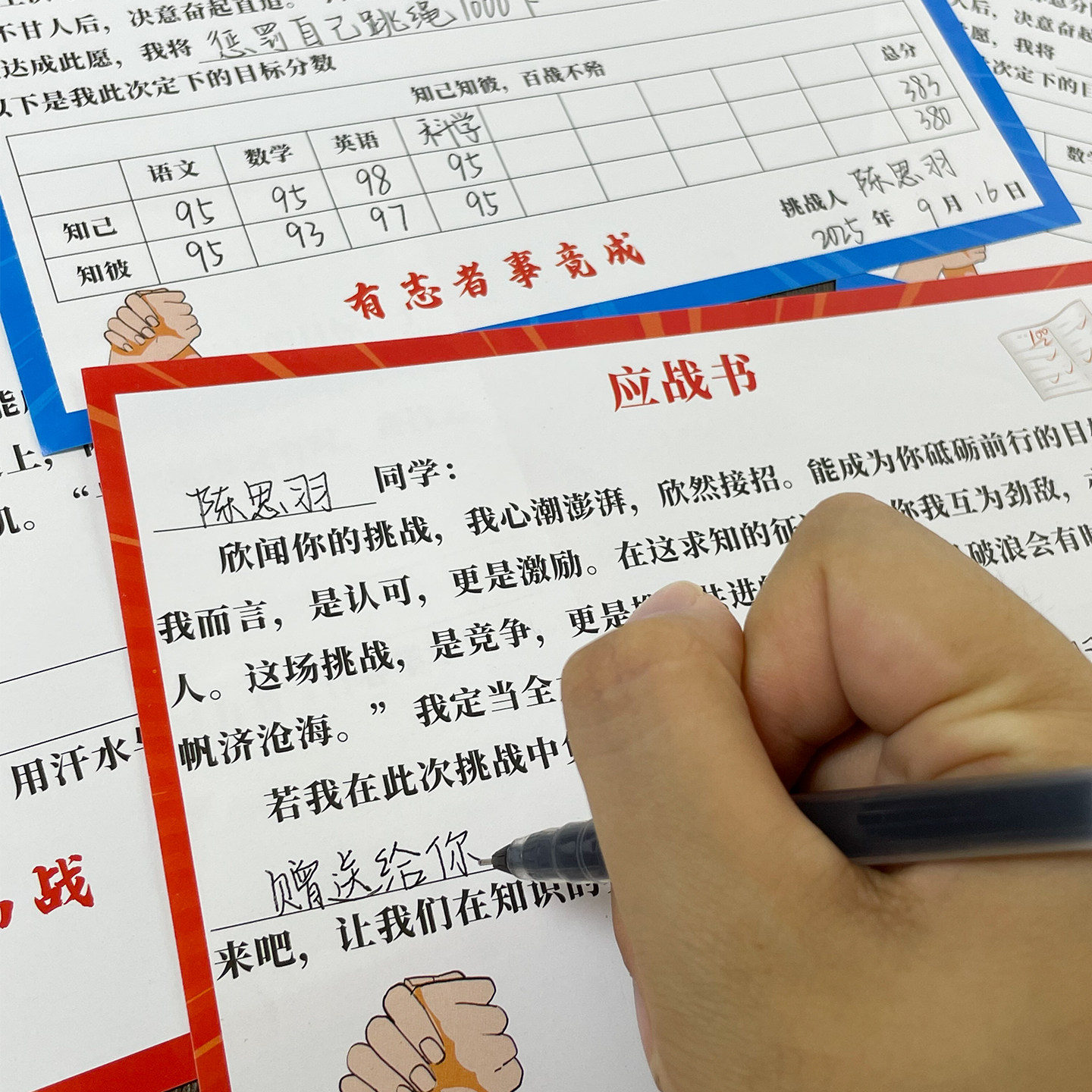 班级同桌学生考试成绩目标PK挑战书应战书卡片激励小学初高中生同学自律学习共同进步创意趣味奖励惩罚计划表