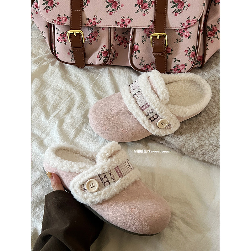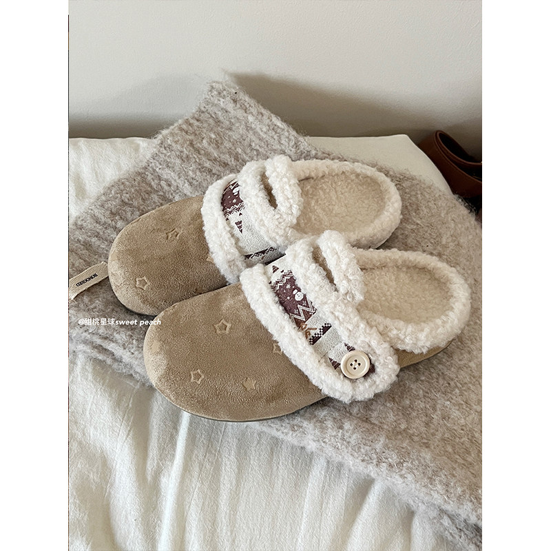 甜桃星球加绒勃肯鞋半拖女冬外穿2025新款内增高厚底毛毛包头拖鞋
