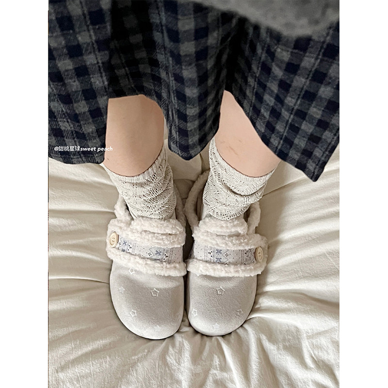 叁叔家~内增高勃肯鞋女加绒秋冬保暖毛毛半拖外穿厚底博肯鞋