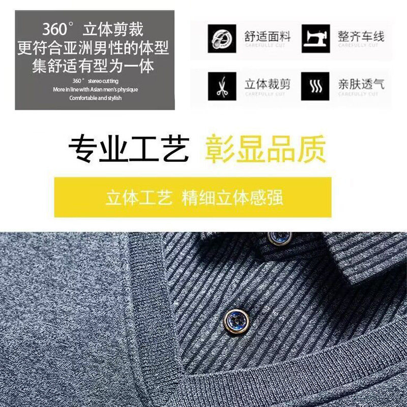 雪中飞男士加绒加厚假两件针织衫毛衣爸爸装保暖衬衫领上衣