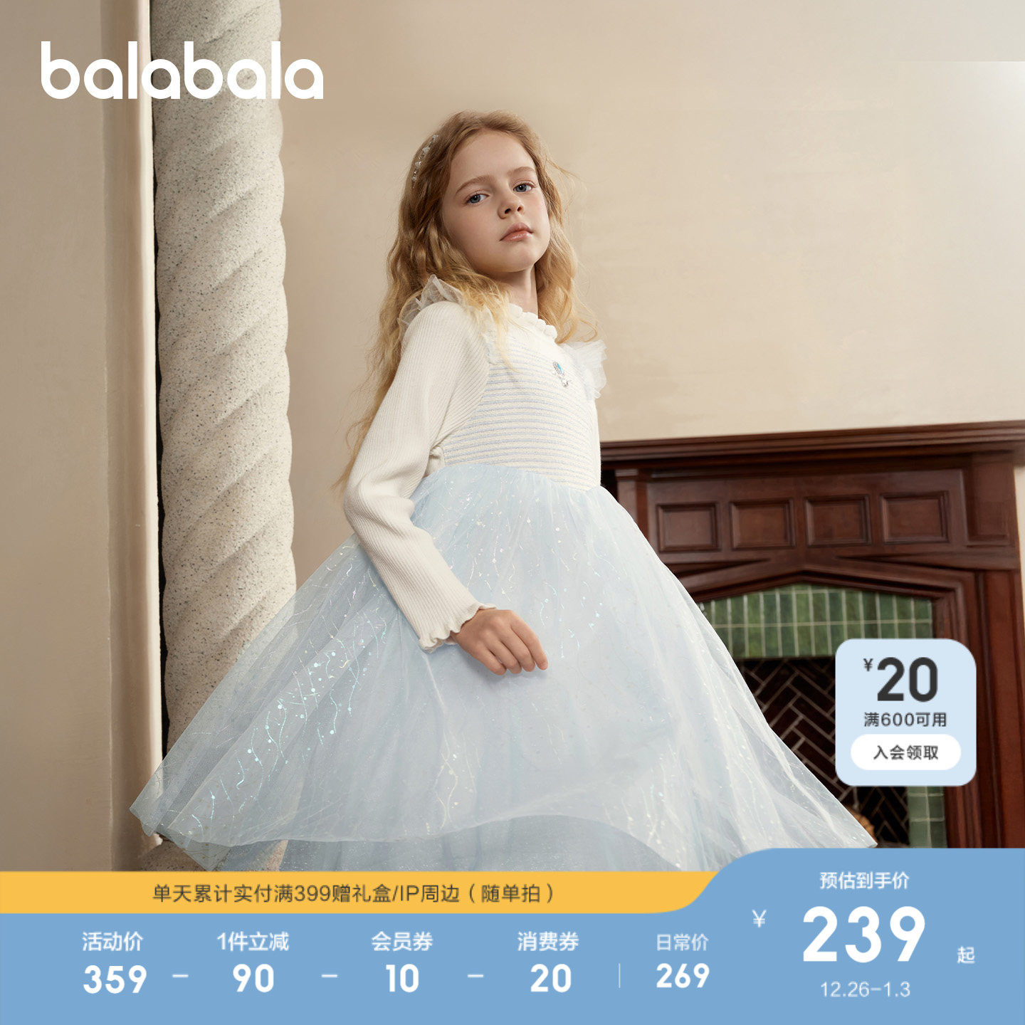 【商场同款】巴拉巴拉童装儿童连衣裙2025秋冬装女童网纱公主裙子