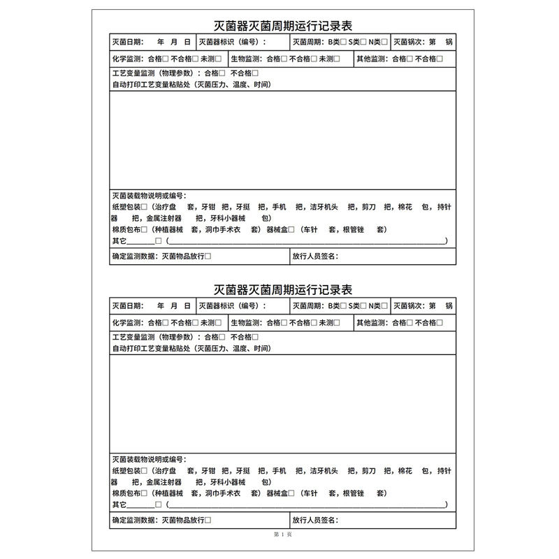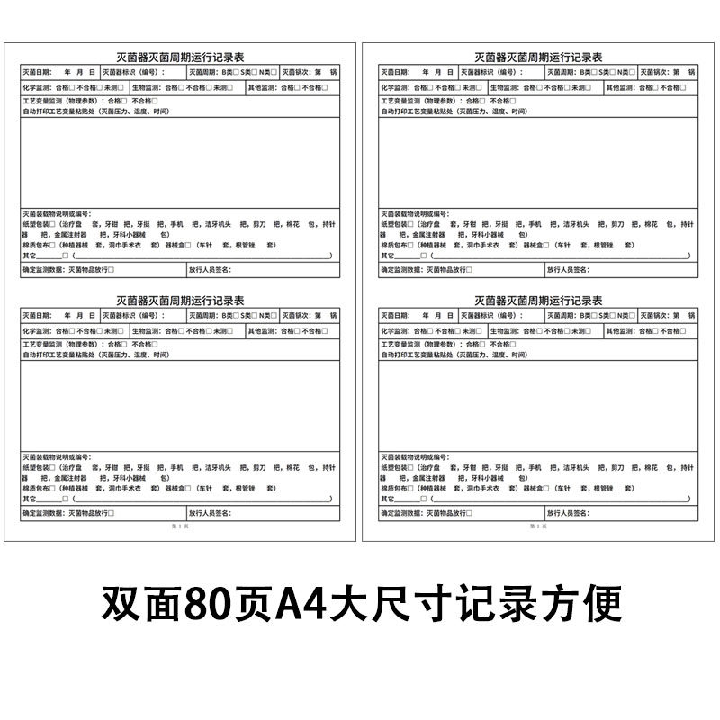 灭菌器灭菌周期运行登记本口腔医院灭菌运行检查记录医疗器具灭菌