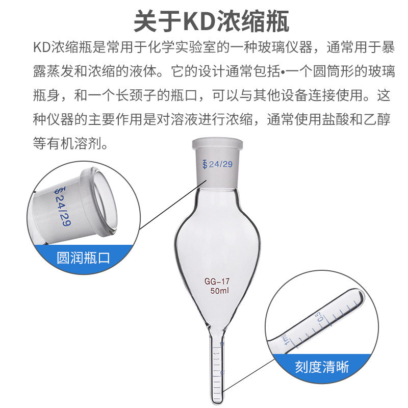 KD浓缩瓶10/25/50/100/150/250ml玻璃浓缩瓶尾管1ml刻度线浓缩管