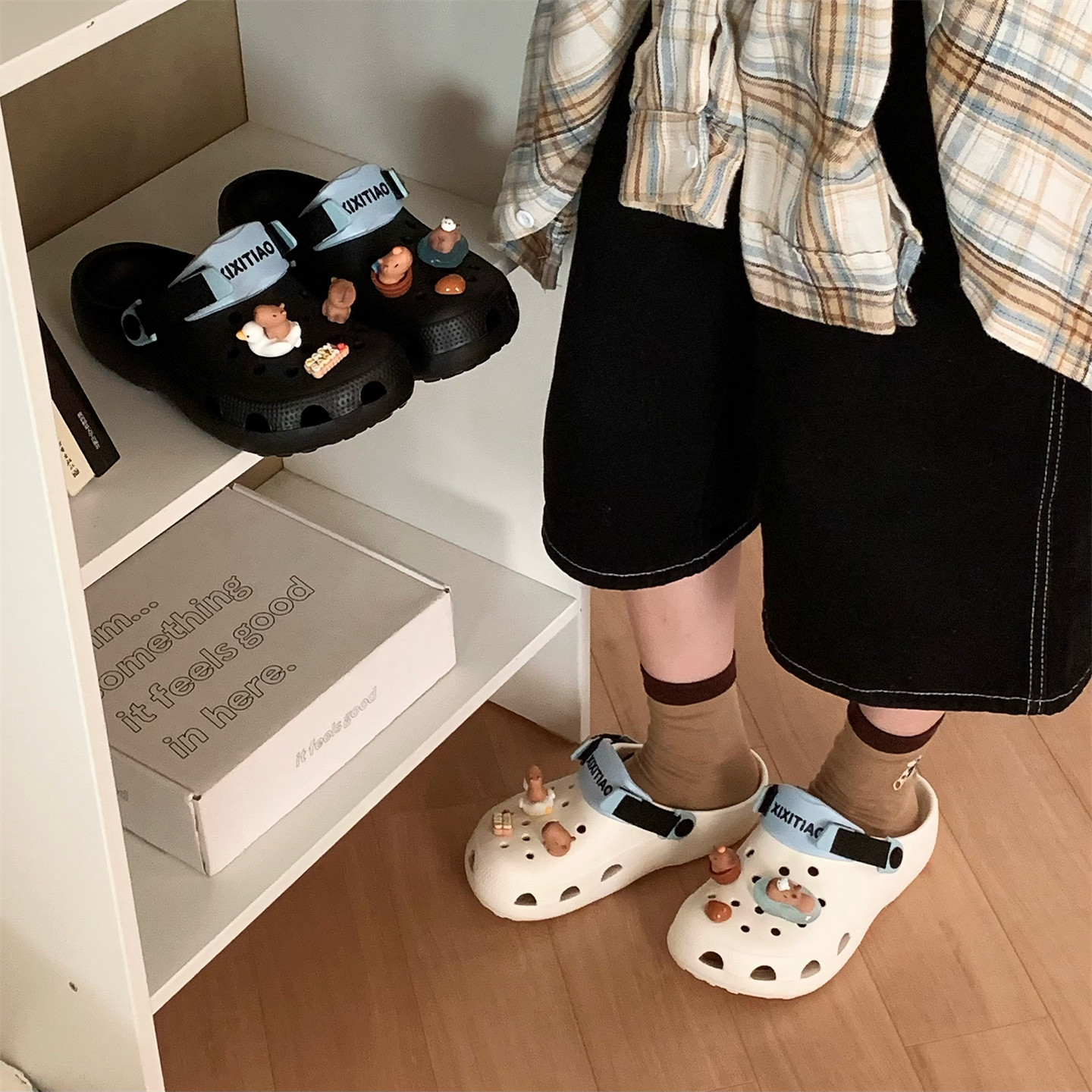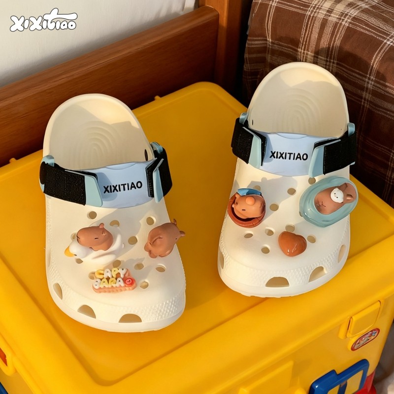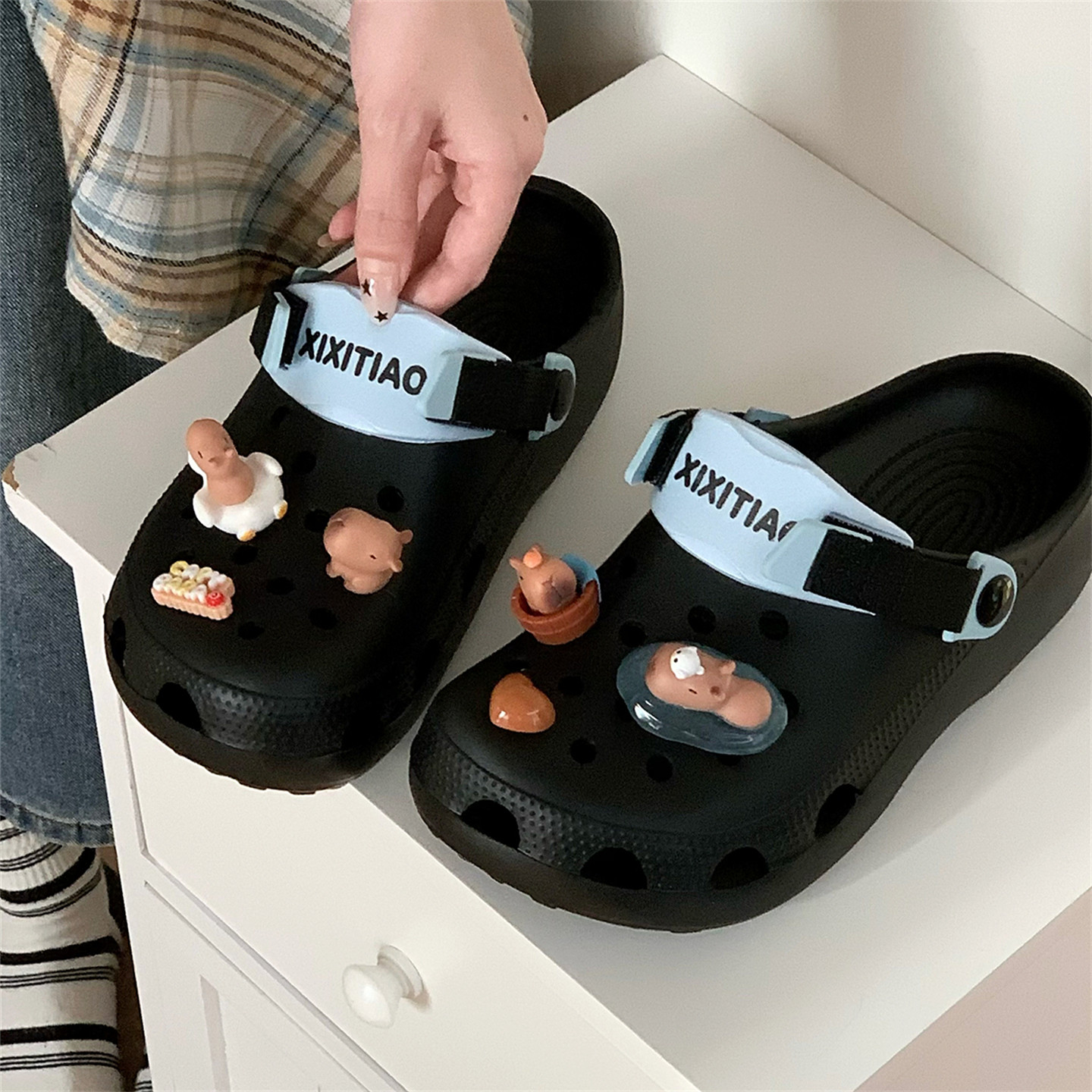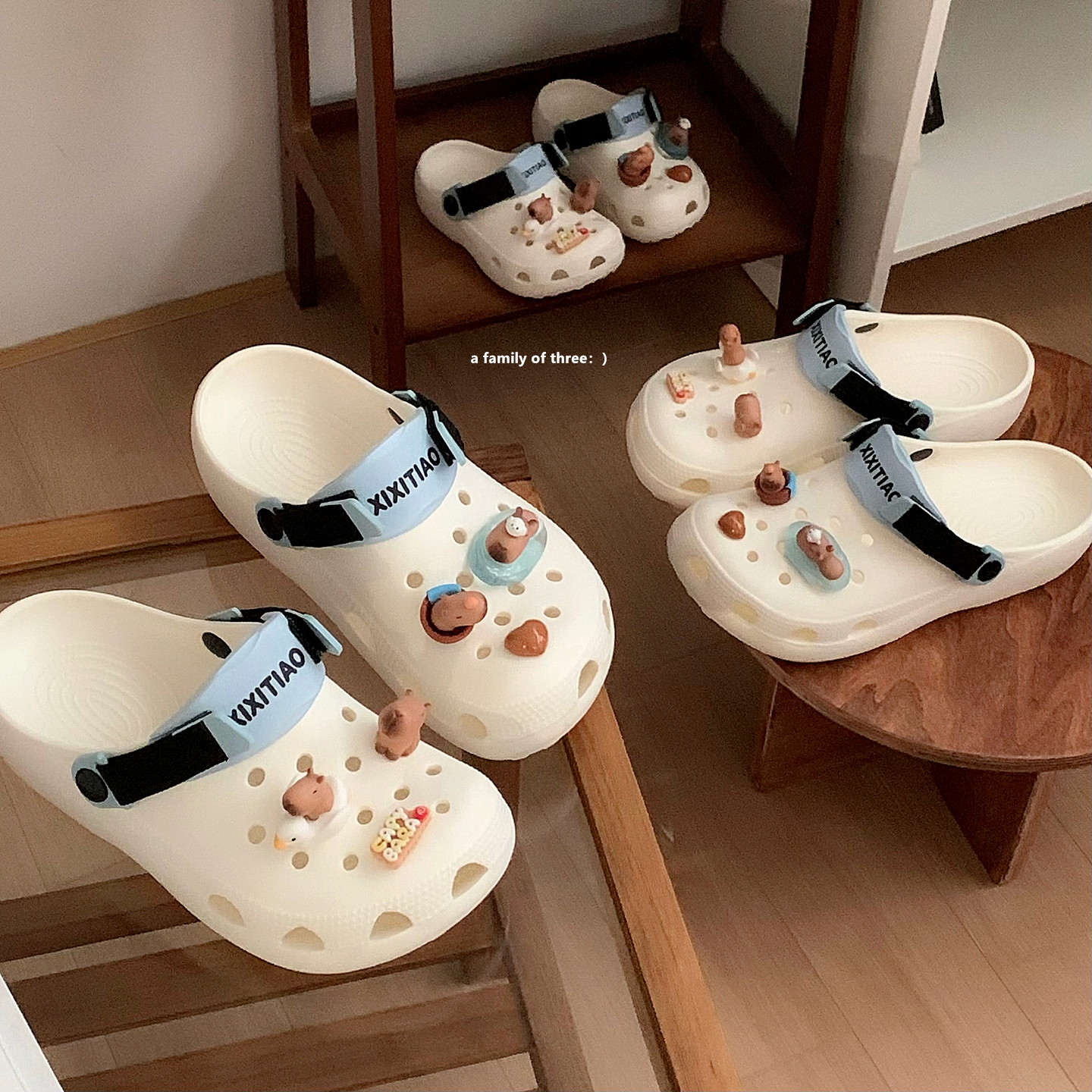 细细条卡皮巴拉水豚软底洞洞鞋eva足弓防滑亲子夏季沙滩凉鞋平底