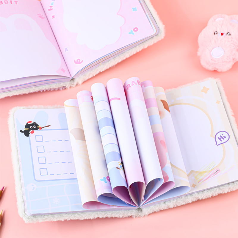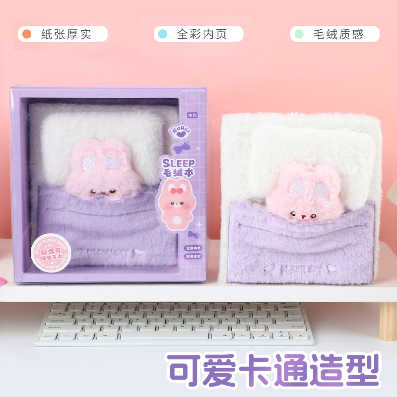 卡通萌趣毛绒本笔记本可爱兔子睡觉觉公仔手账本子日记本女生礼物