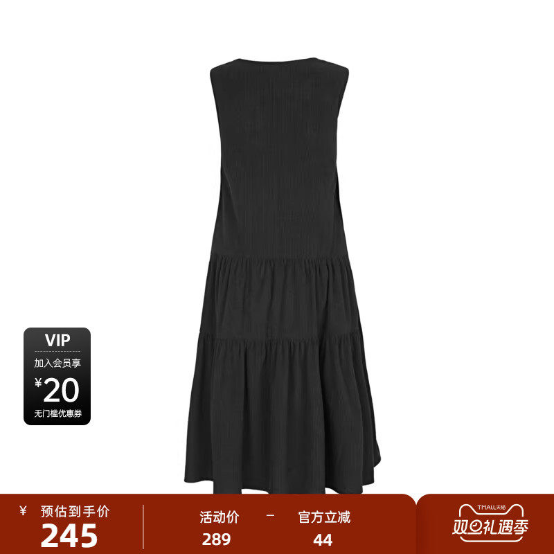 sdeer圣迪奥女装复古圆领盘扣碎褶无袖连衣裙S244Z1204