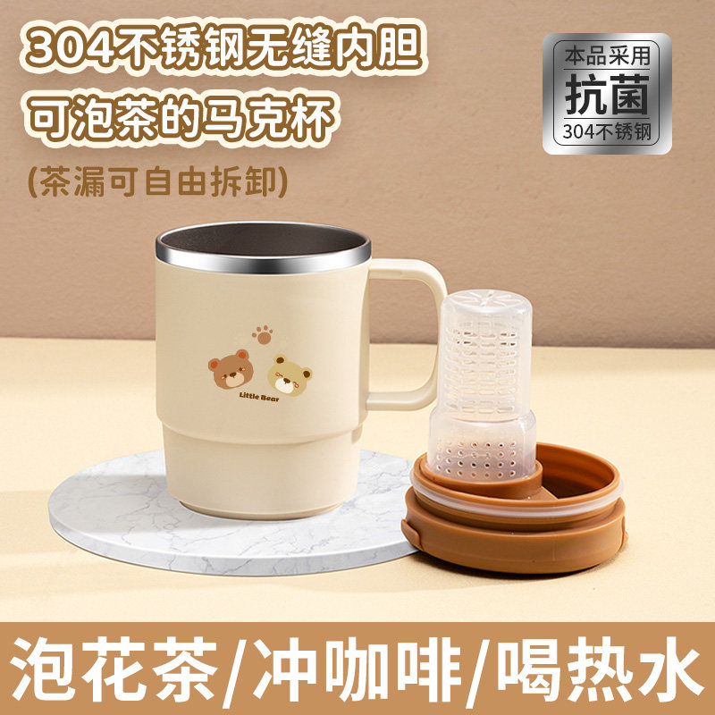 304不锈钢马克杯泡茶杯茶水分离杯办公室高颜值杯带盖家用咖啡杯
