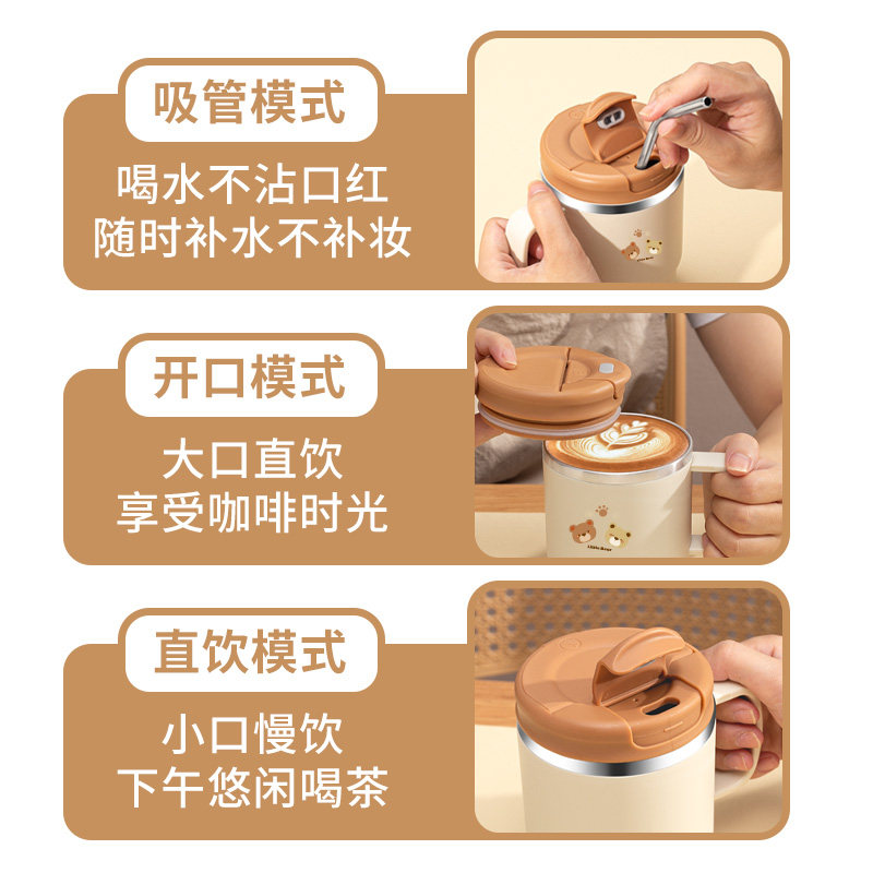 趣皿可爱马克杯卡通带盖带勺陶瓷杯情侣水杯咖啡杯子送女生伴手礼