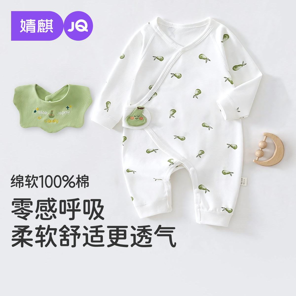 婧麒婴儿连体衣春秋款纯棉新生儿衣服秋季婴幼儿男女宝宝偏开睡衣