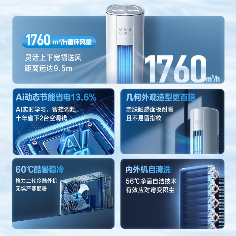 【Gree/格力官方】新一级2匹3匹变频冷暖空调客厅立式柜机云佳Pro