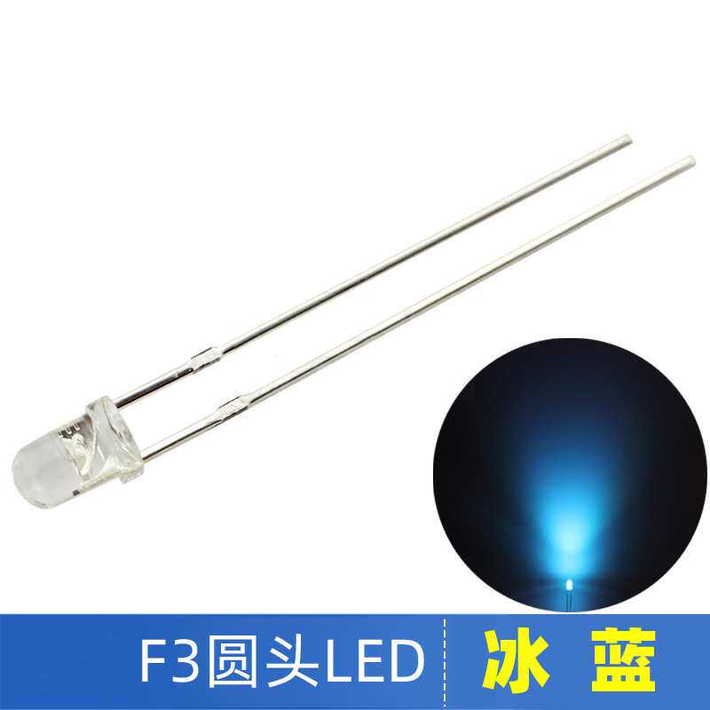 F3高亮LED圆头冰蓝色led灯珠长脚冰蓝光源3mm发光二极管汽车装饰