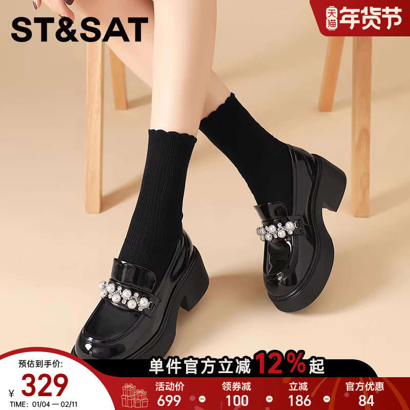 星期六厚底乐福鞋女2025新款秋季英伦风小皮鞋一脚蹬粗跟增高单鞋