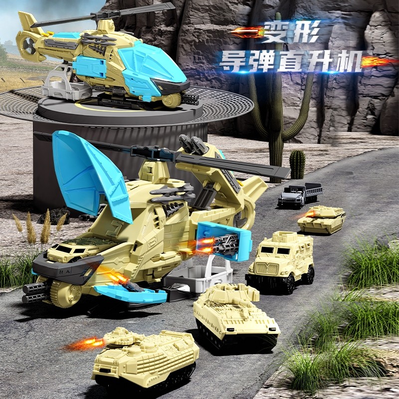 儿童静态模型玩具手动摆件军事警察直升飞机可变形男孩生日礼物