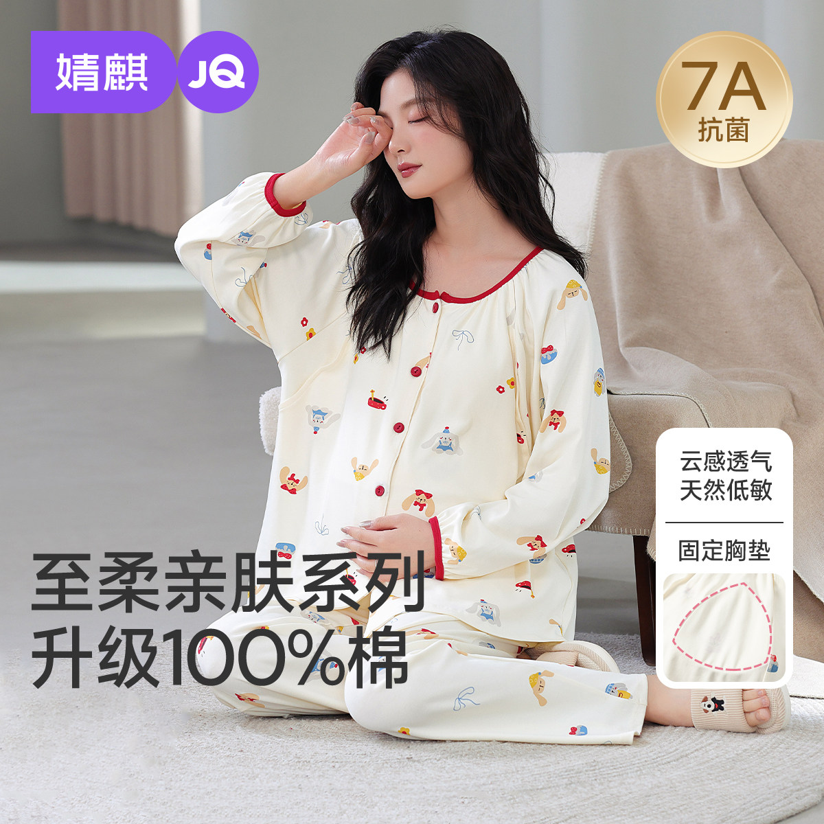 婧麒孕妇睡衣月子服纯棉产后十月份带胸垫哺乳喂奶待产家居服套装