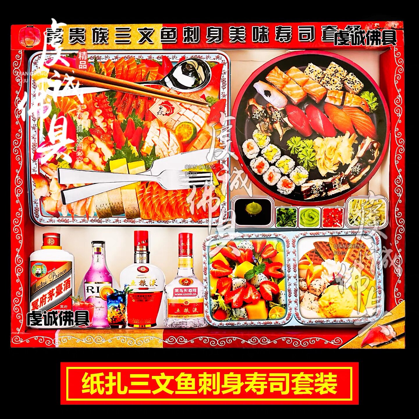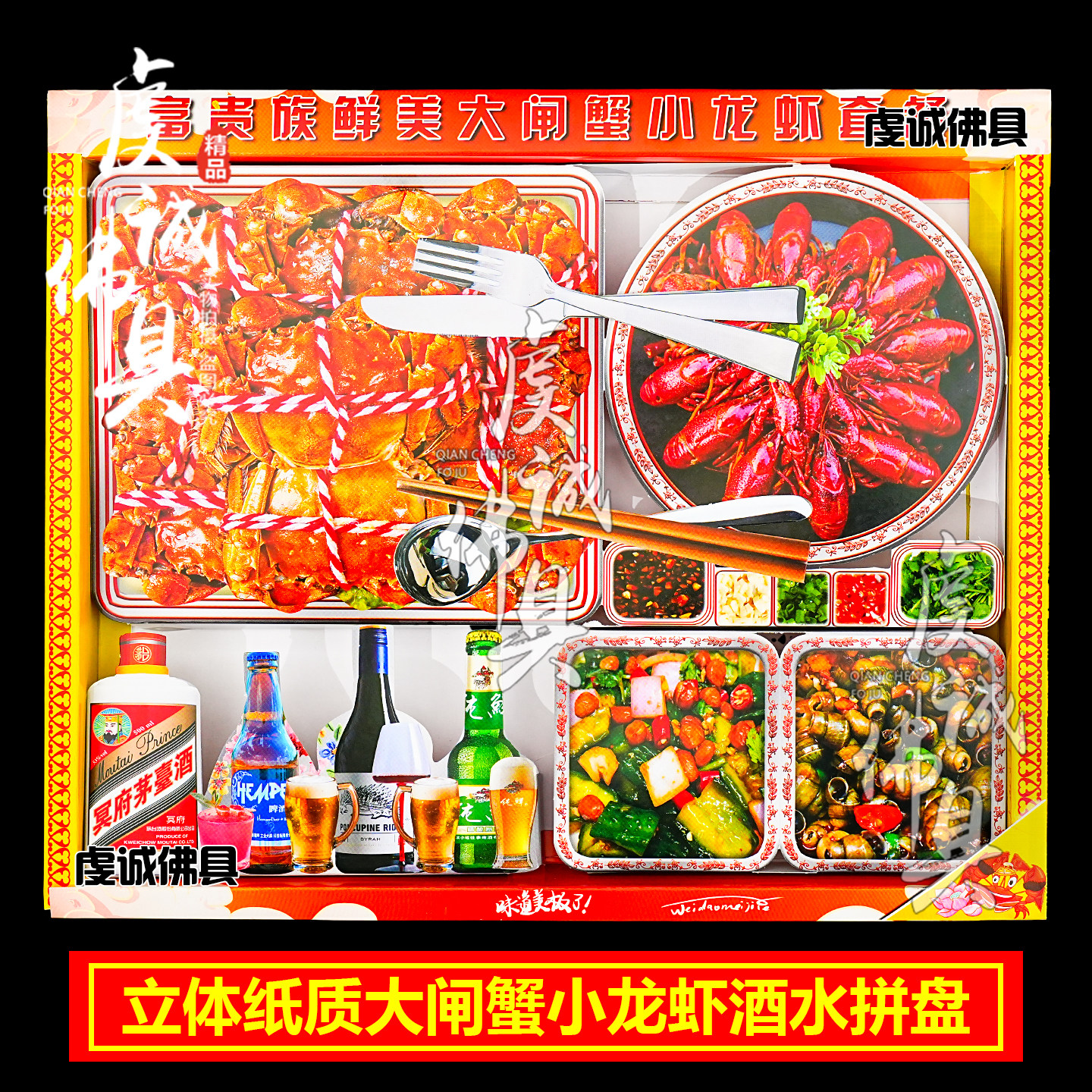 祭祀用品冥府大闸蟹小龙虾鲍鱼纸质清明节祭奠纸钱全套海鲜【1】