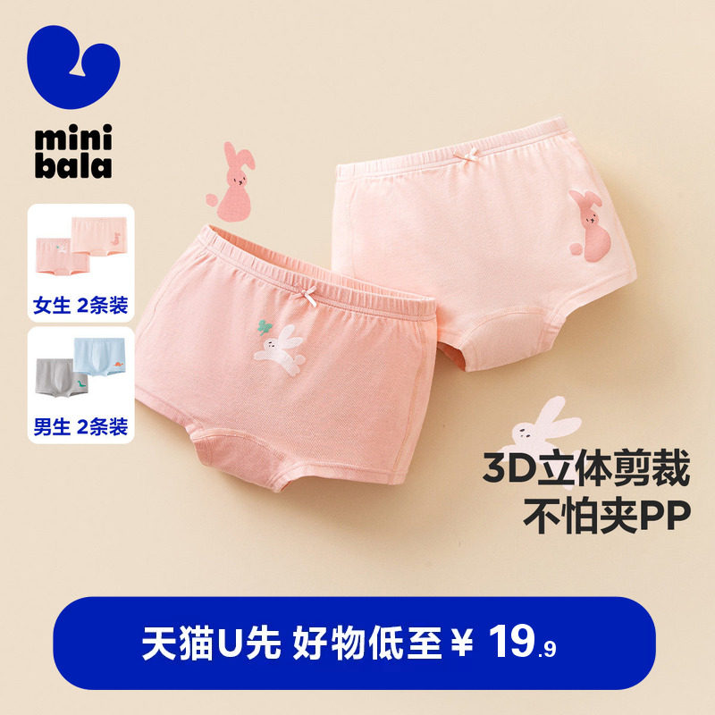 【天猫U先】迷你巴拉巴拉男女宝宝内裤舒适透气不夹pp四角裤短裤
