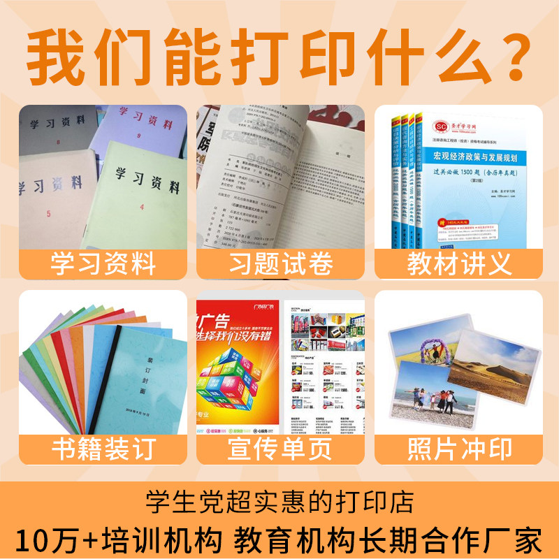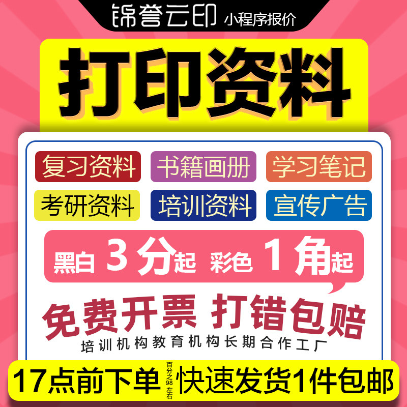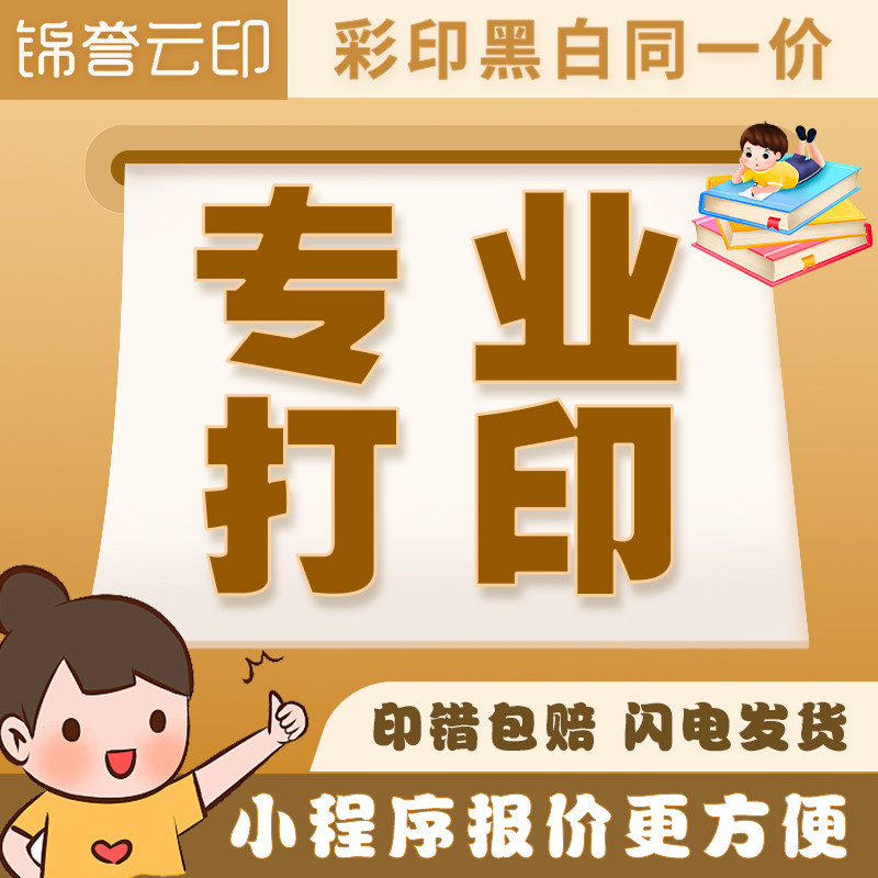 打印网上资料印刷复印服务彩印文件书籍彩色A4快印试卷装订成册