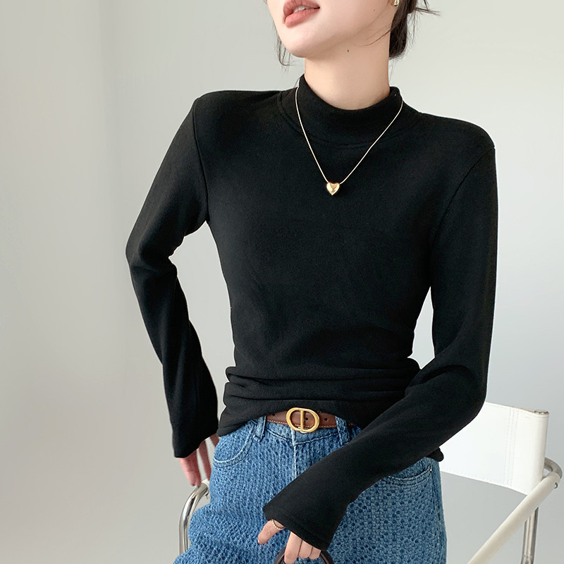 半高领内搭加绒加厚打底衫女冬一体绒可外穿中领螺纹T恤保暖上衣