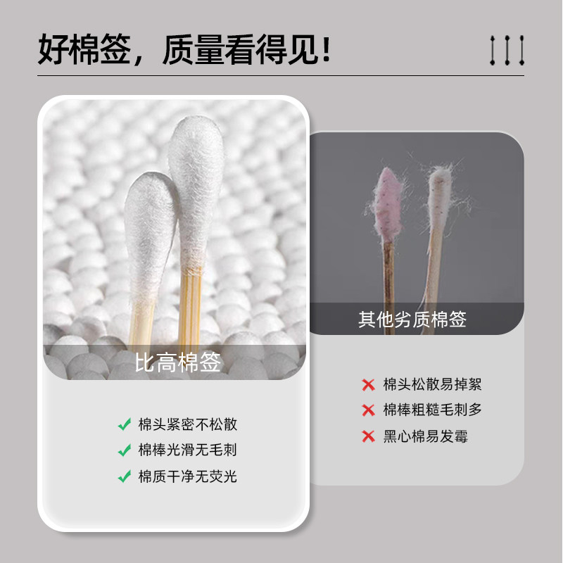 棉签掏耳朵专用不掉毛清洁一次性化妆卸妆家用双头棉花棒尖头袋装