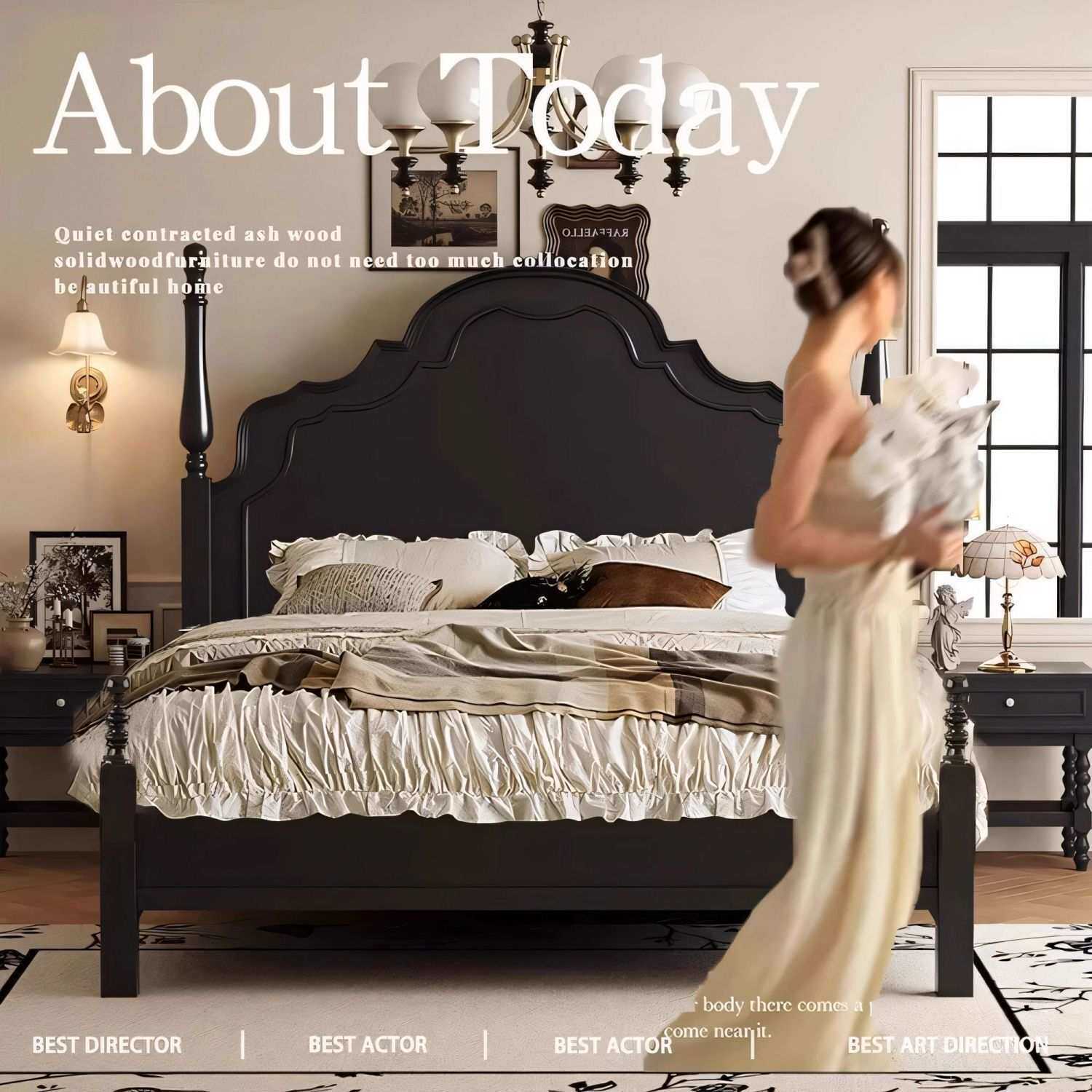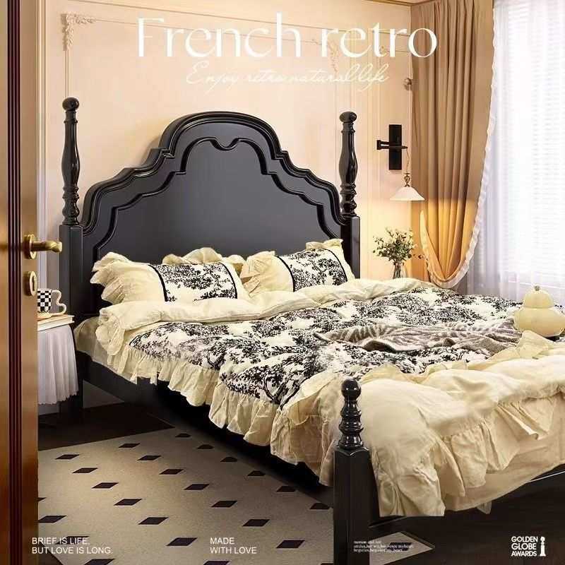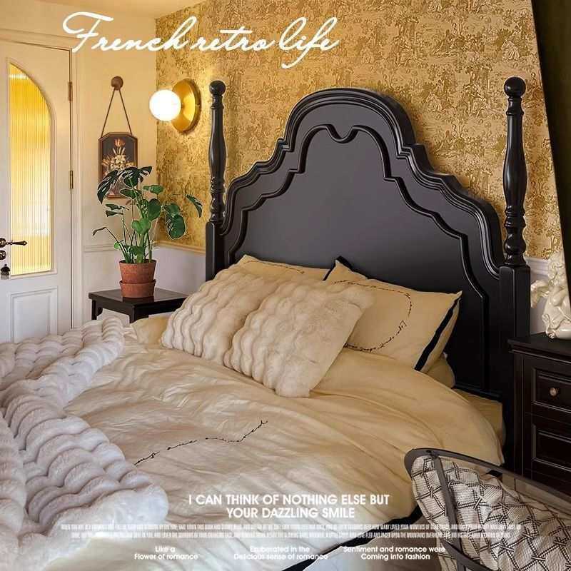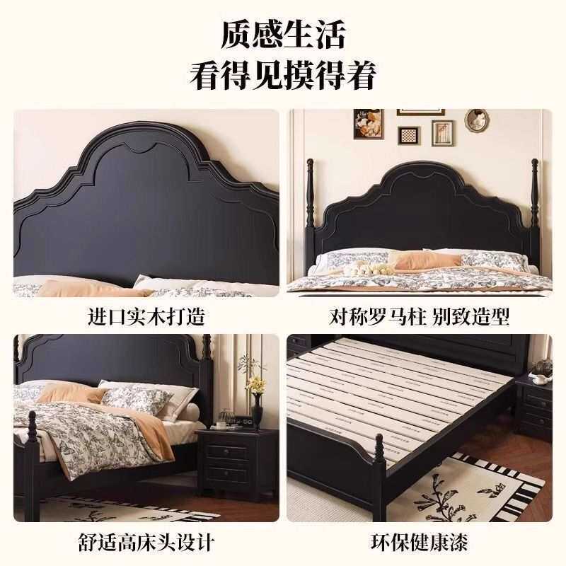 简美风美式实木双人床1.5m1.8m中古风法式床轻奢婚床主卧床安娜床