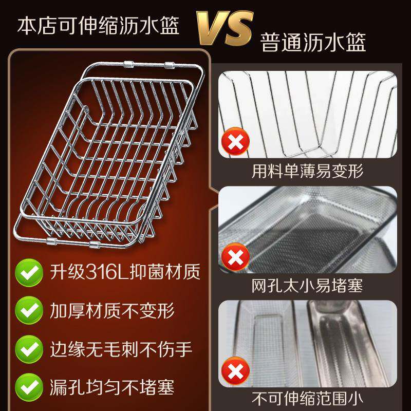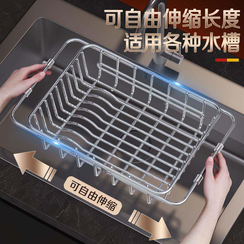 厨房316L不锈钢水槽沥水架置物架洗碗池沥水碗盘沥水篮伸缩碗碟