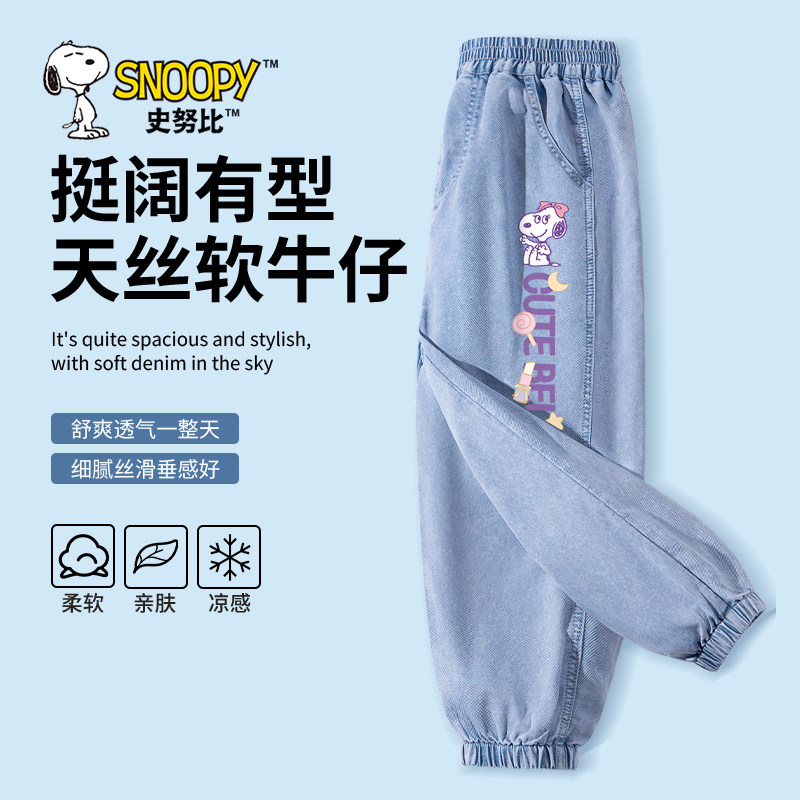 史努比女童牛仔裤夏季薄款天丝裤子女大童洋气时髦夏装儿童防蚊裤